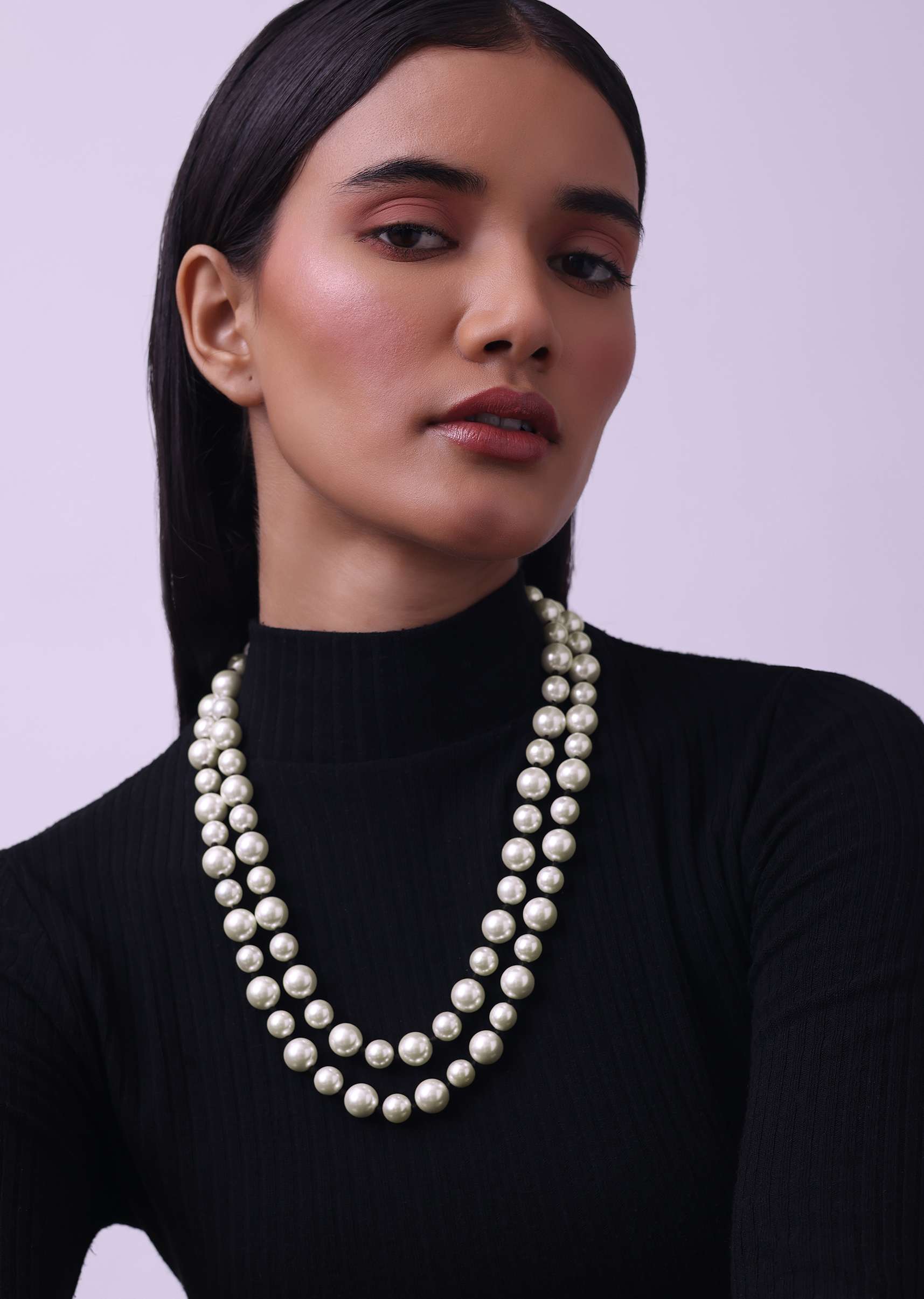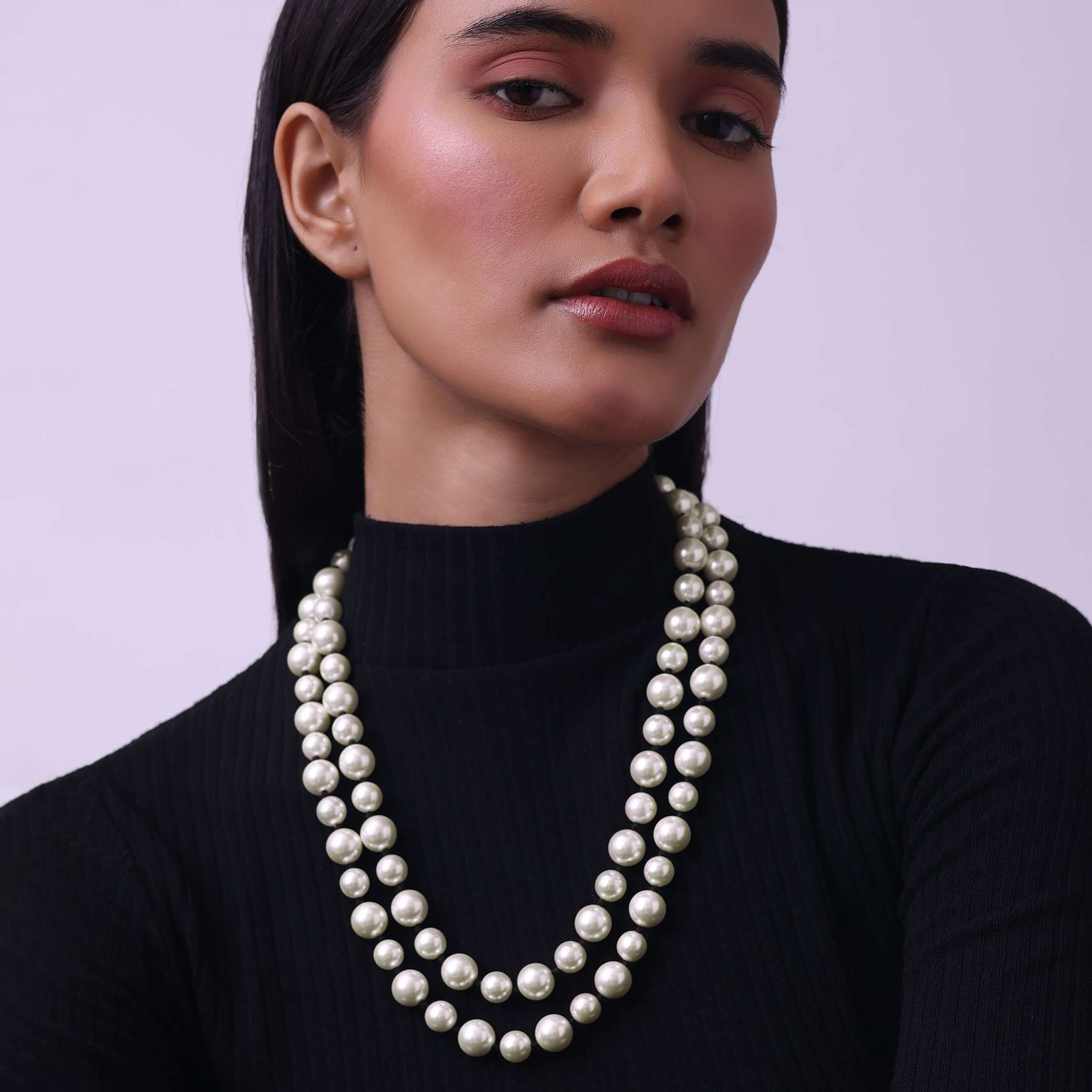 Elevate your jewelry collection with this exquisite two layered mother of pearls mala. Crafted with meticulous attention to detail this stunning piece features two layers of lustrous mother of pearls.EVENT - Perfect for all festive and formal occasions.Avoid contact with water chemicals harsh liquids perfumes etc. Do not wear this piece of jewelry while showering gym swimming etc. Please keep the product away from moisture and humidity when not in use. Slight variations in design may vary. Being rewarded as the most trusted brand our customers believe we deliver the same styles as promised on the website. Awarded as the Most Trusted Brand, we're delivering styles you love, just as promised.