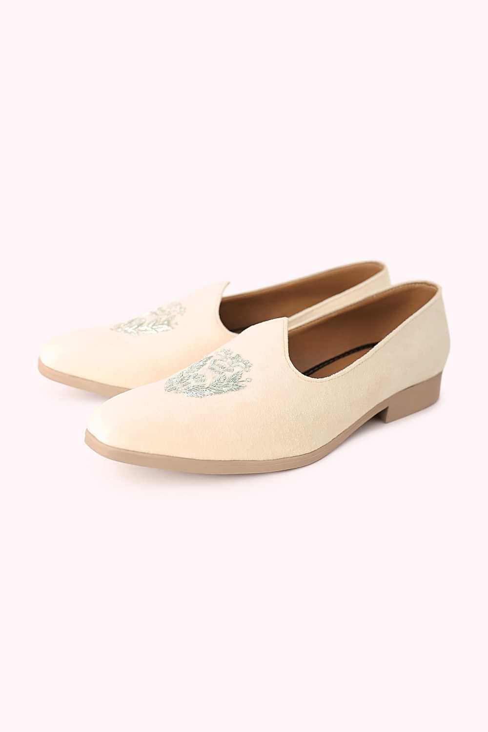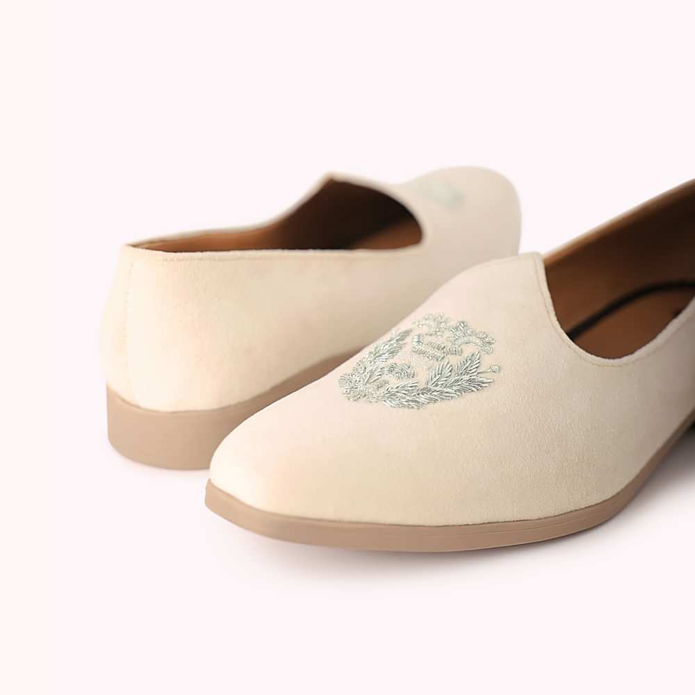 - Designed with striking motifs in a contrast tone, the block heels and round-toe elevate the elegant appeal of these juttis.