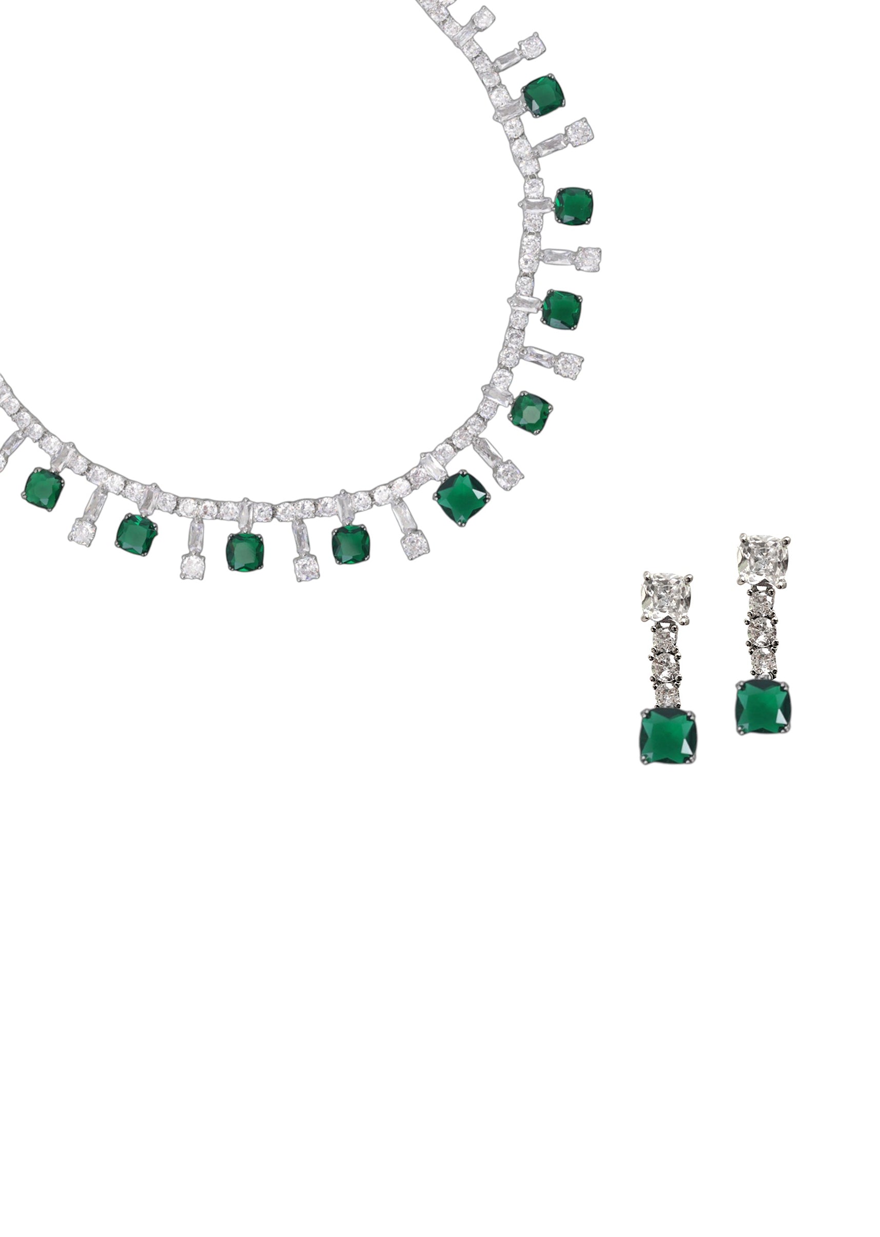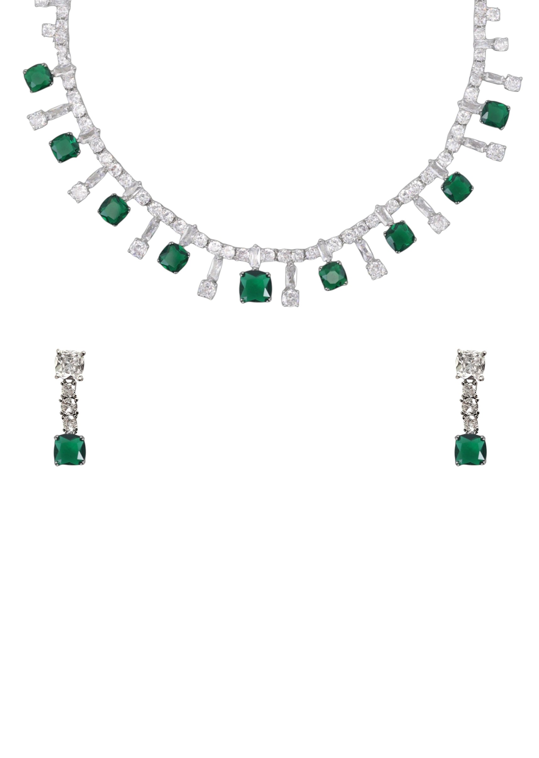 A white zircon stone drop necklace and earring set featuring dazzling zircon stones in a sleek drop design, exuding timeless elegance and refined allure. Perfect for adding a radiant, graceful touch to bridal, festive, or formal ensembles. Awarded as the Most Trusted Brand, we're delivering styles you love, just as promised.