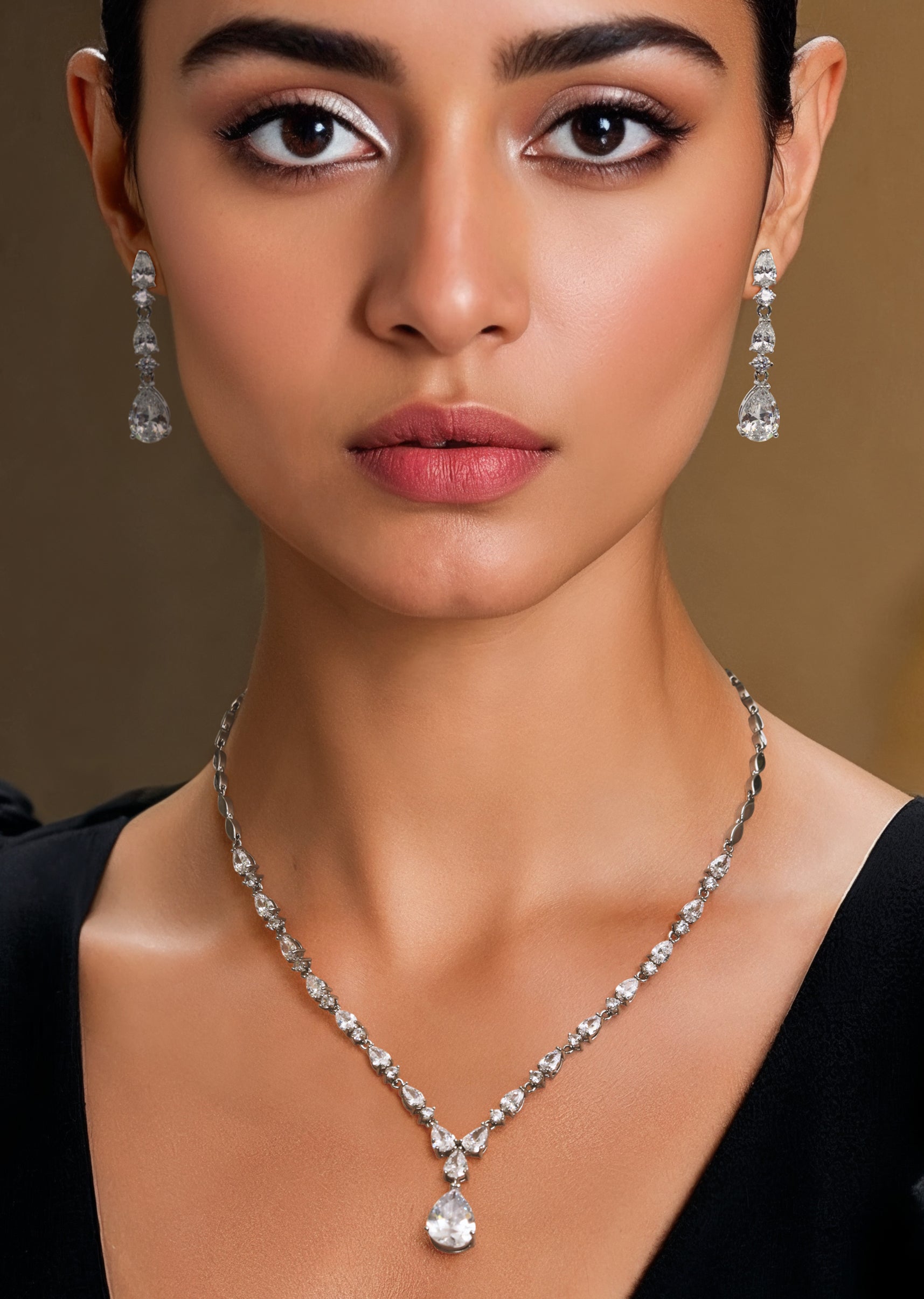Complements minimal or embellished outfits, creating a refined and timeless statement.Fit Tips: Lightweight construction ensures comfort, while secure fittings keep the pendant and earrings perfectly in place.