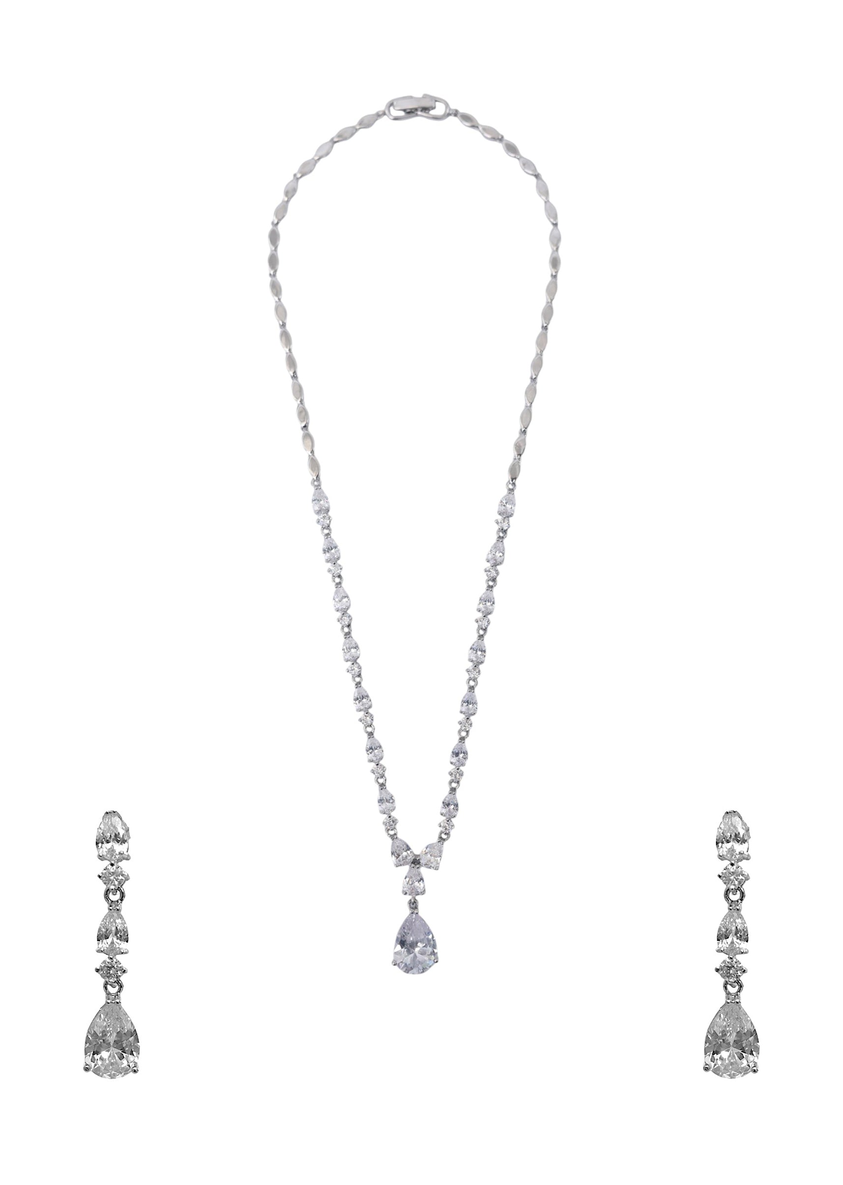 A white zircon stone drop pendant necklace and earring set featuring sparkling zircon drops and elegant craftsmanship, radiating classic sophistication. Perfect for adding a graceful and polished touch to bridal, festive, or formal ensembles. Awarded as the Most Trusted Brand, we're delivering styles you love, just as promised.