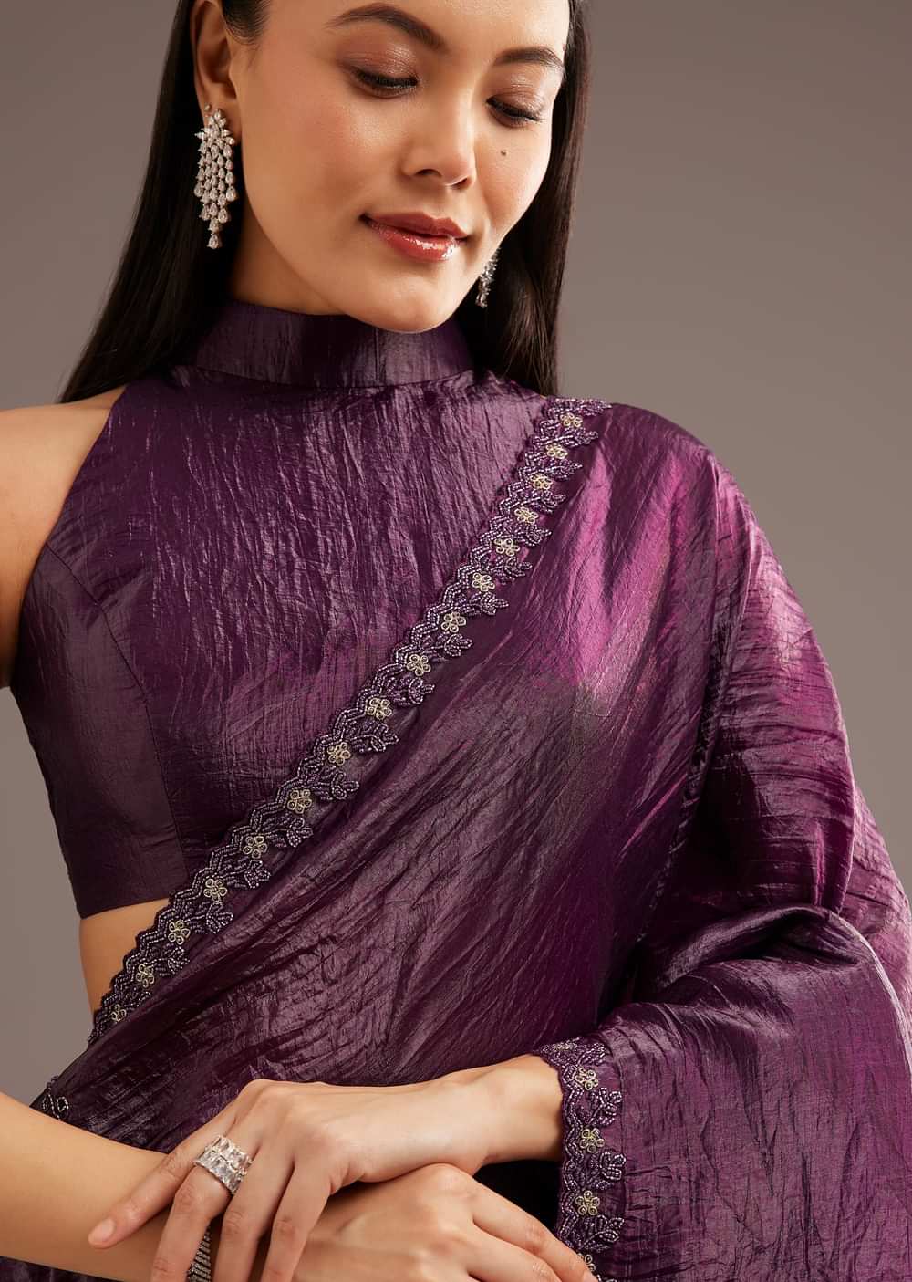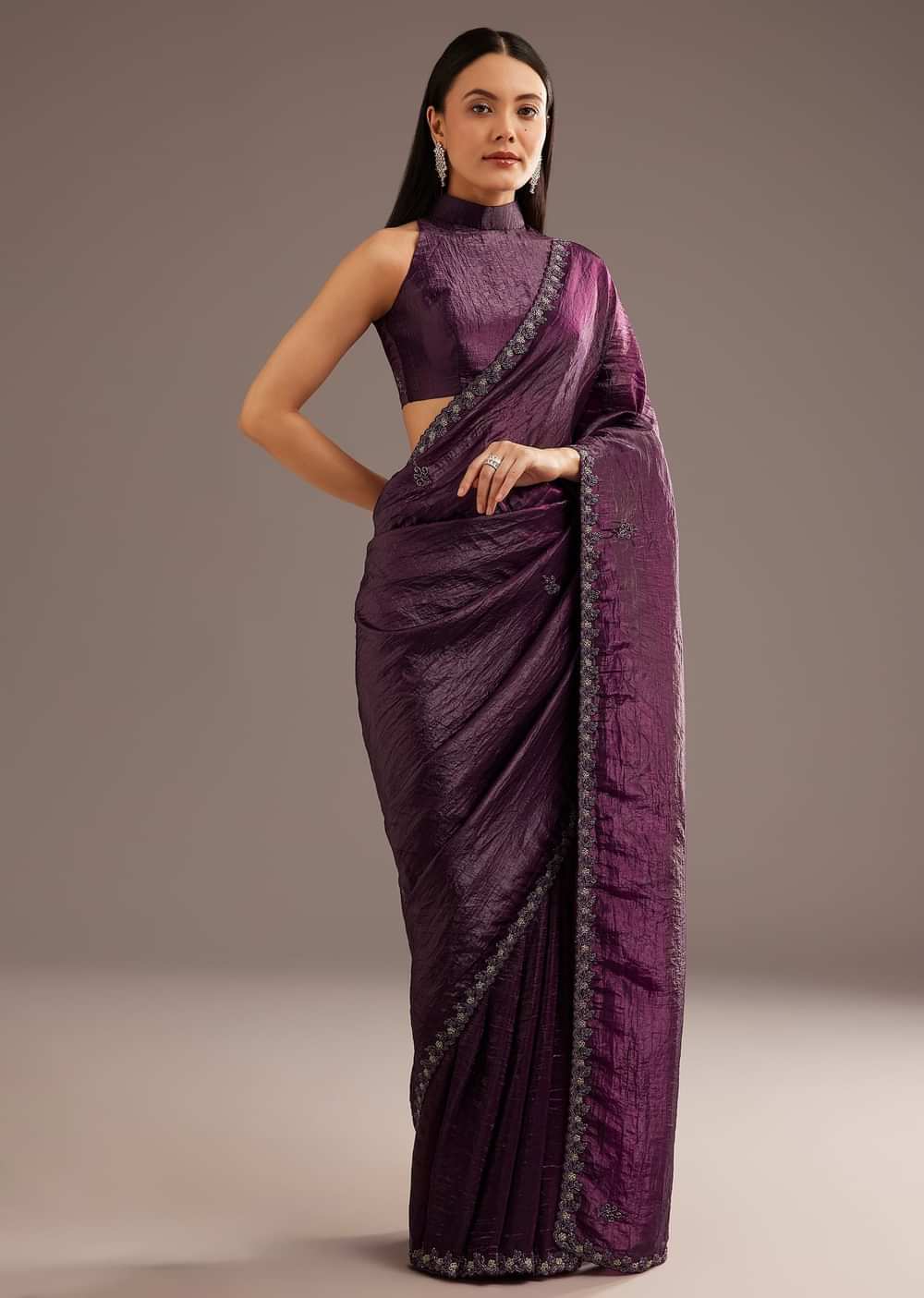 Add A Touch Of Sophistication With This Crushed Tissue Silk Saree, Adorned With Cutdana Embroidered Scallop Border. Its Lightweight Feel And Graceful Drape Make It Perfect For Intimate Celebrations And Special Occasions. The Delicate Detailing Exudes Subtle Glamour. Celebrate In Style With This Modern Classic.Awarded As The Most Trusted Brand We'Re Delivering Styles You Love Just As Promised.