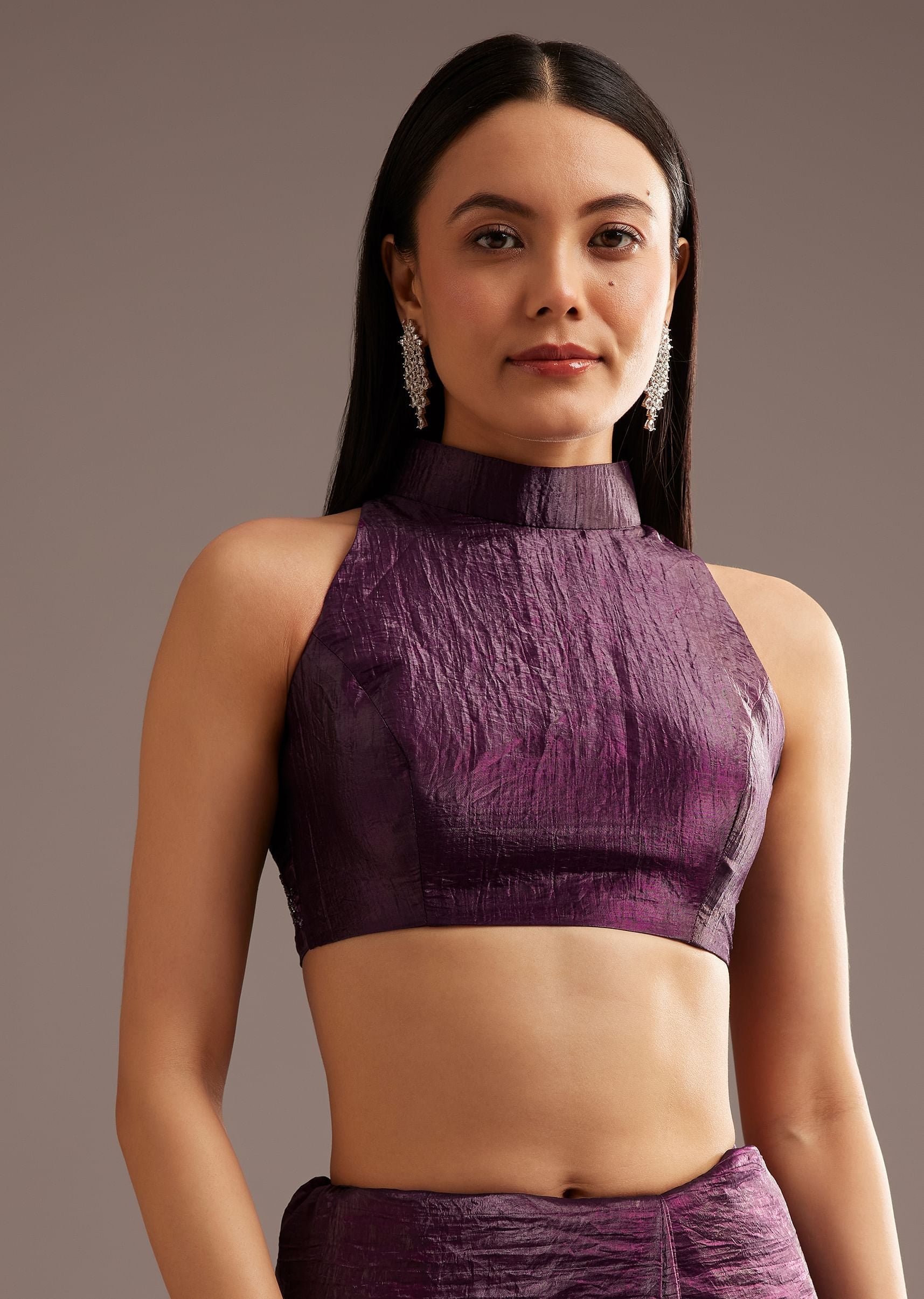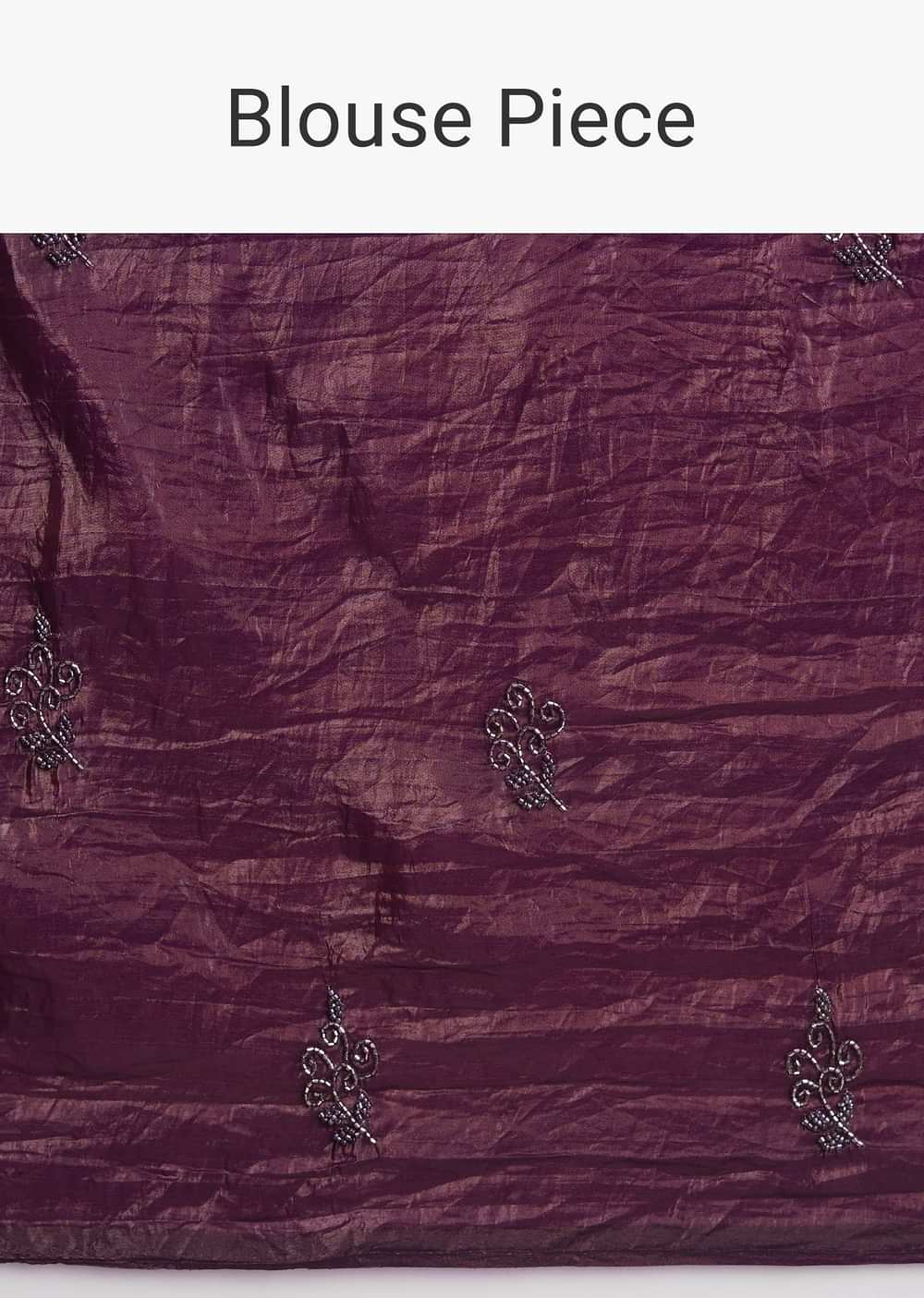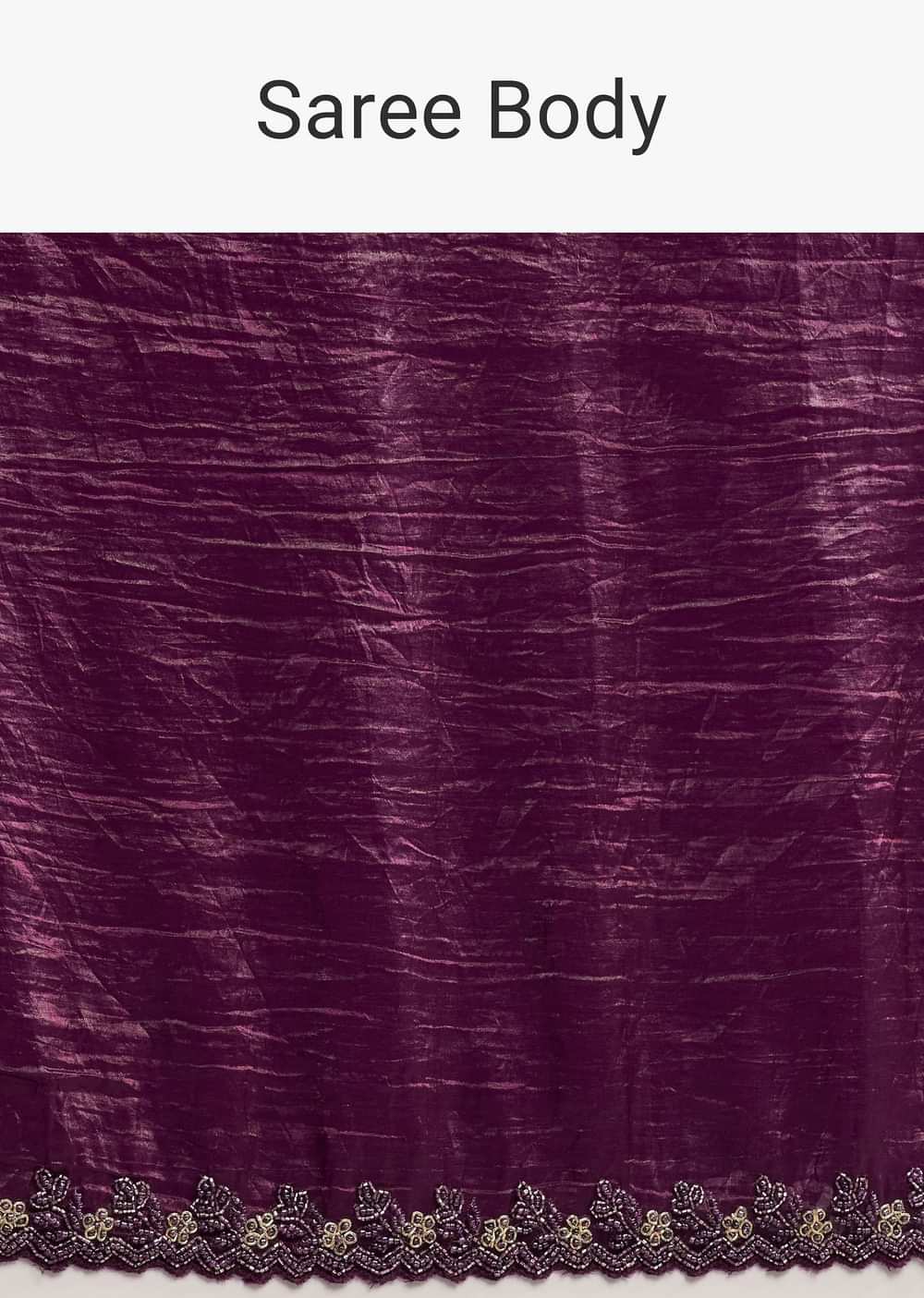 Wine Crushed Tissue Silk Saree With Cutdana Scallop Border