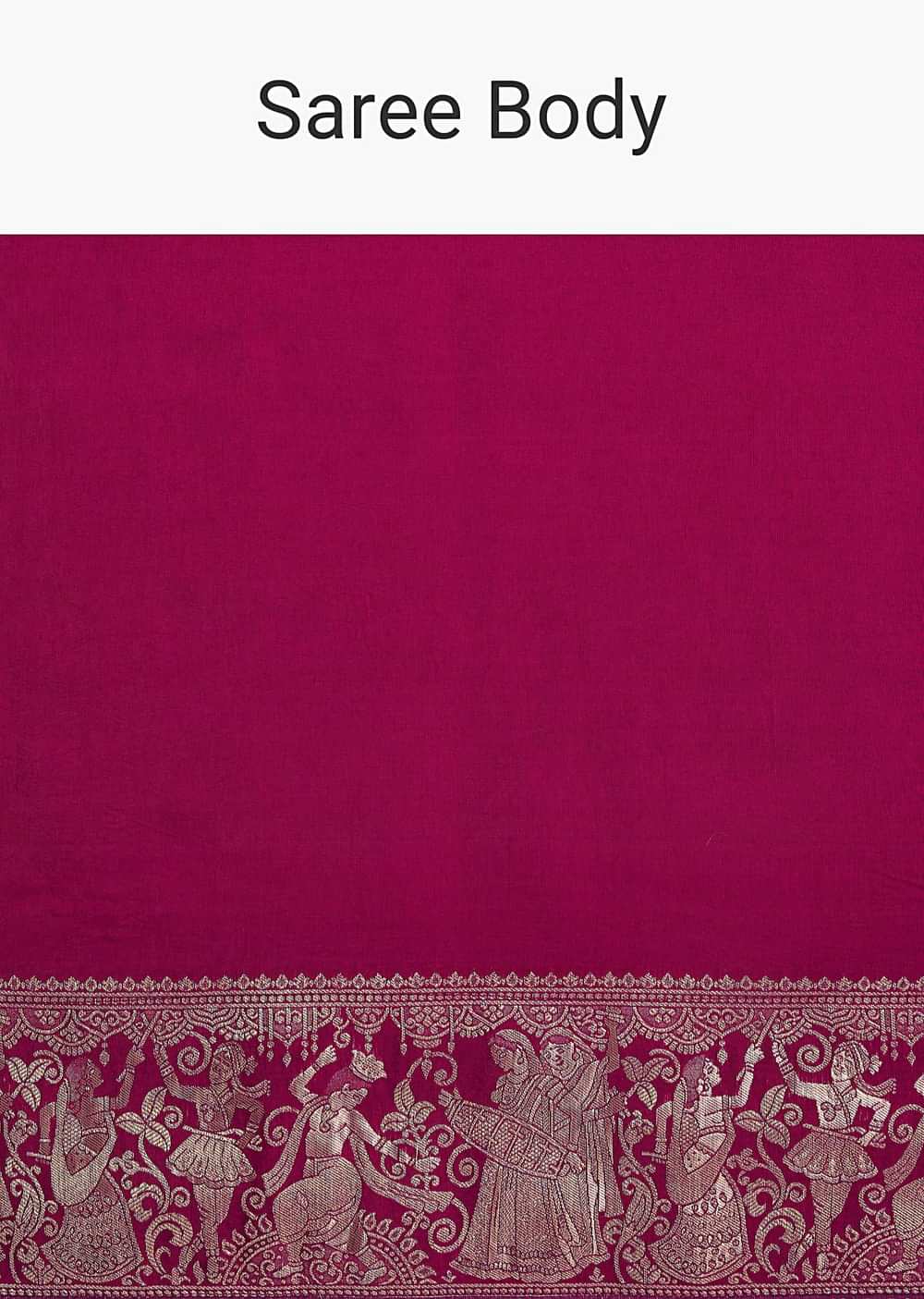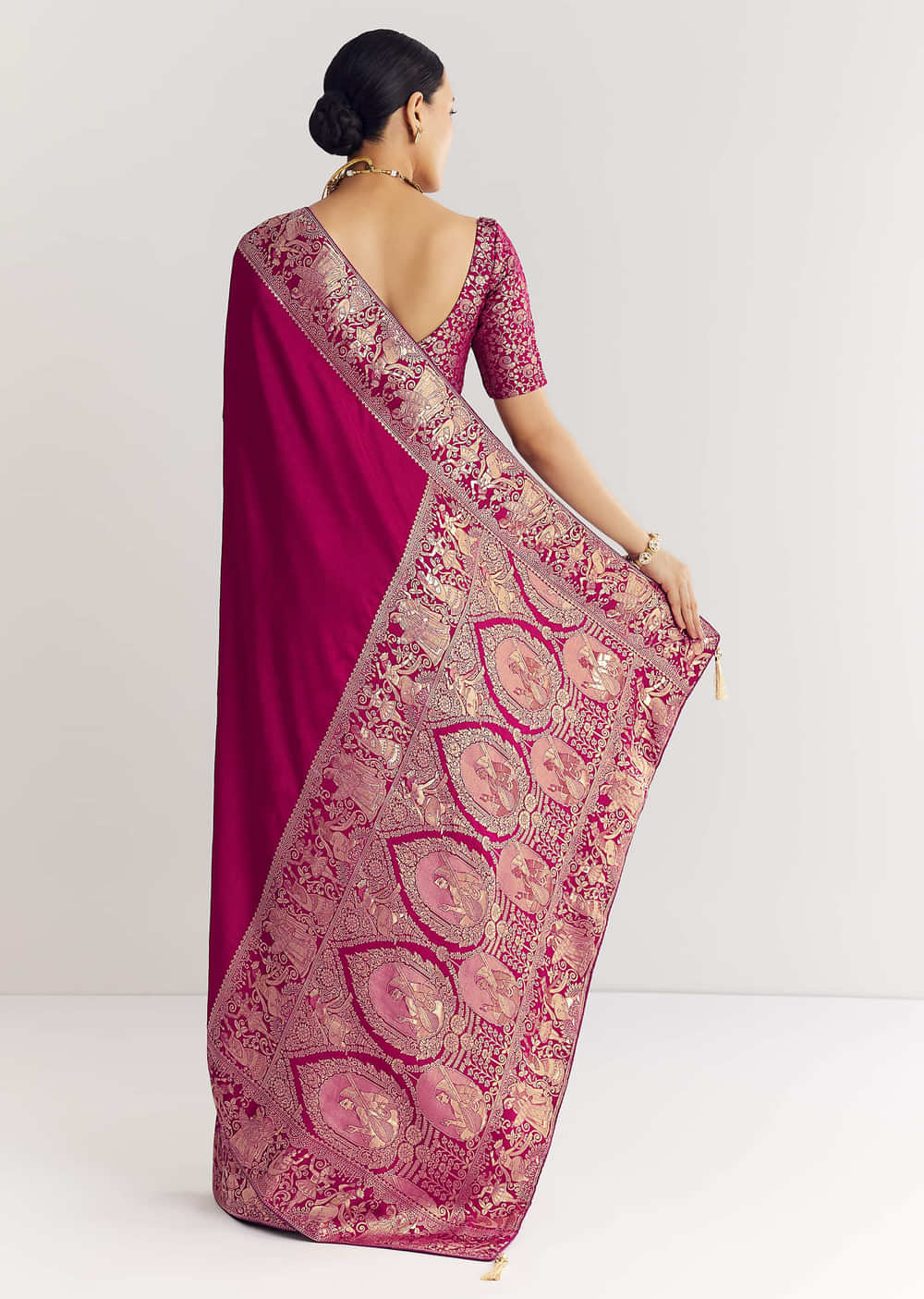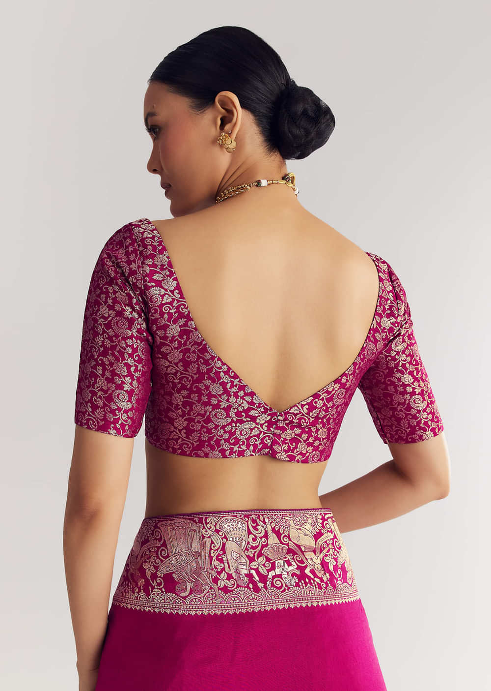 Enchant your senses with this wine saree. Each thread sings a lullaby of tradition and elegance. A go-to for festive gatherings and cultural celebrations. A drape destined to dazzle at every festive hour. Awarded as the Most Trusted Brand, we're delivering styles you love, just as promised.