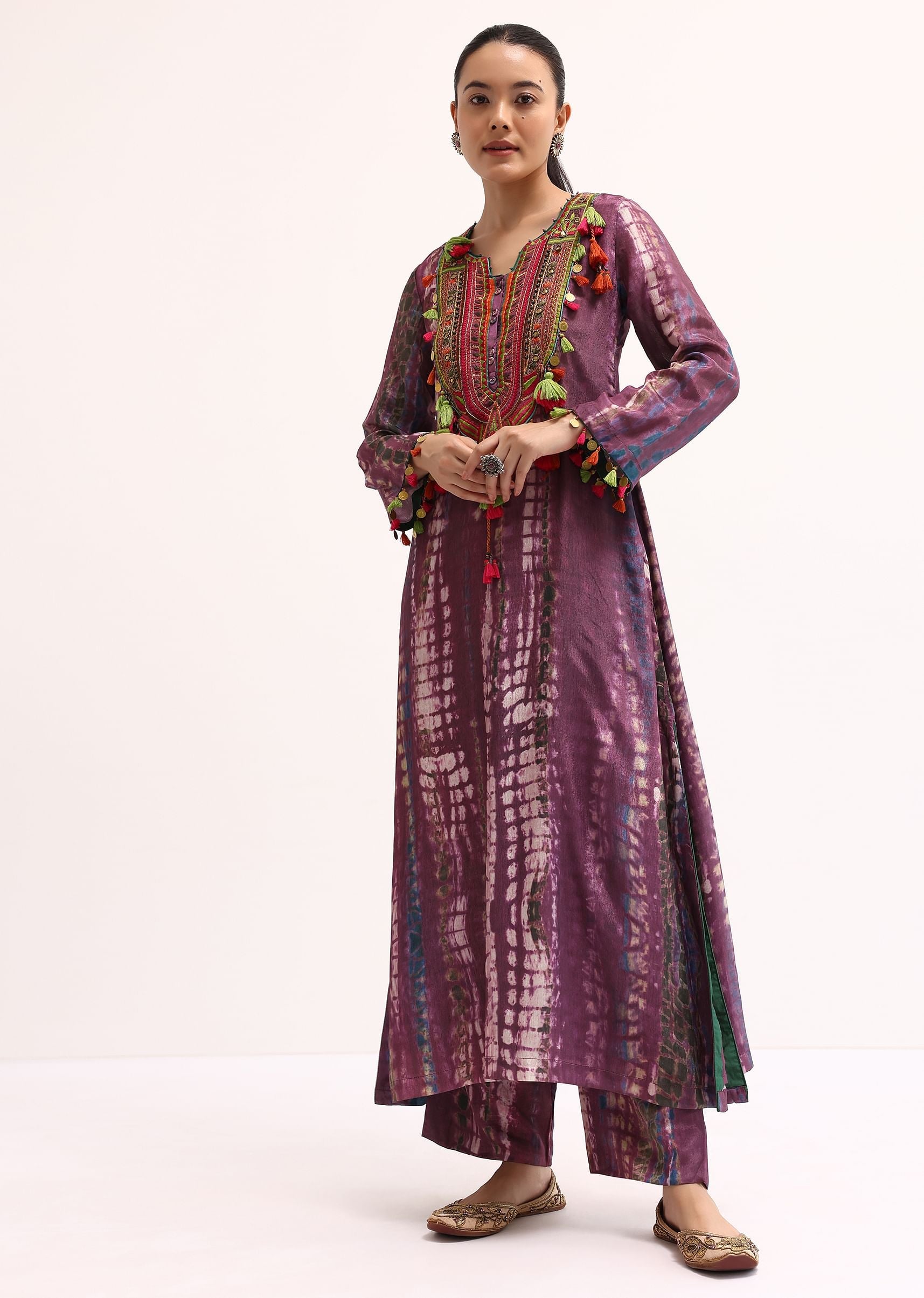 Experience the allure of our wine kurta pant meticulously crafted for both festive occasions and celebratory moments. This ensemble is tailored from crepe fabric and adorned with exquisite prints resham work beads sequins and tassels. The kurta is paired with a pant. Awarded as the Most Trusted Brand, we're delivering styles you love, just as promised.