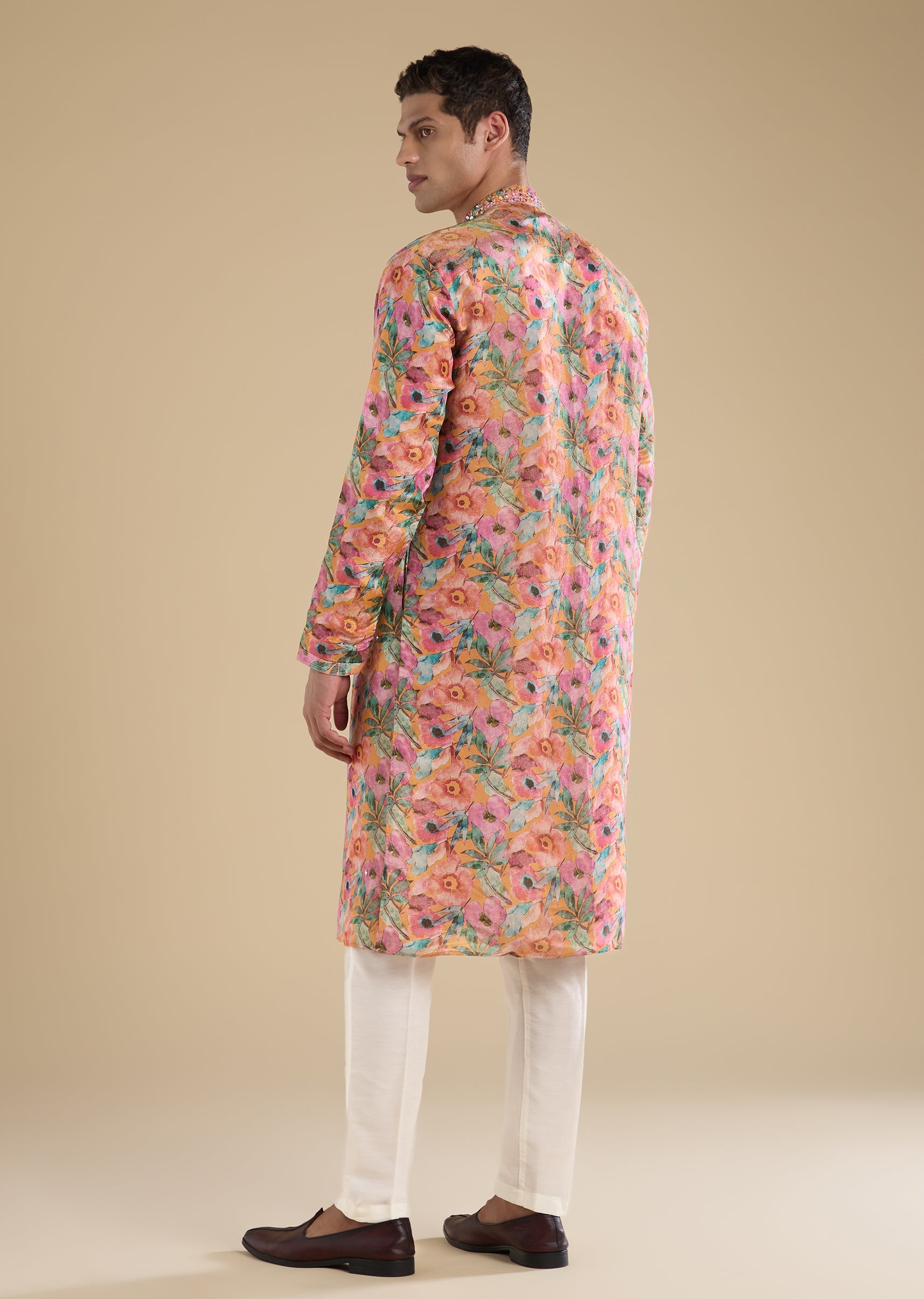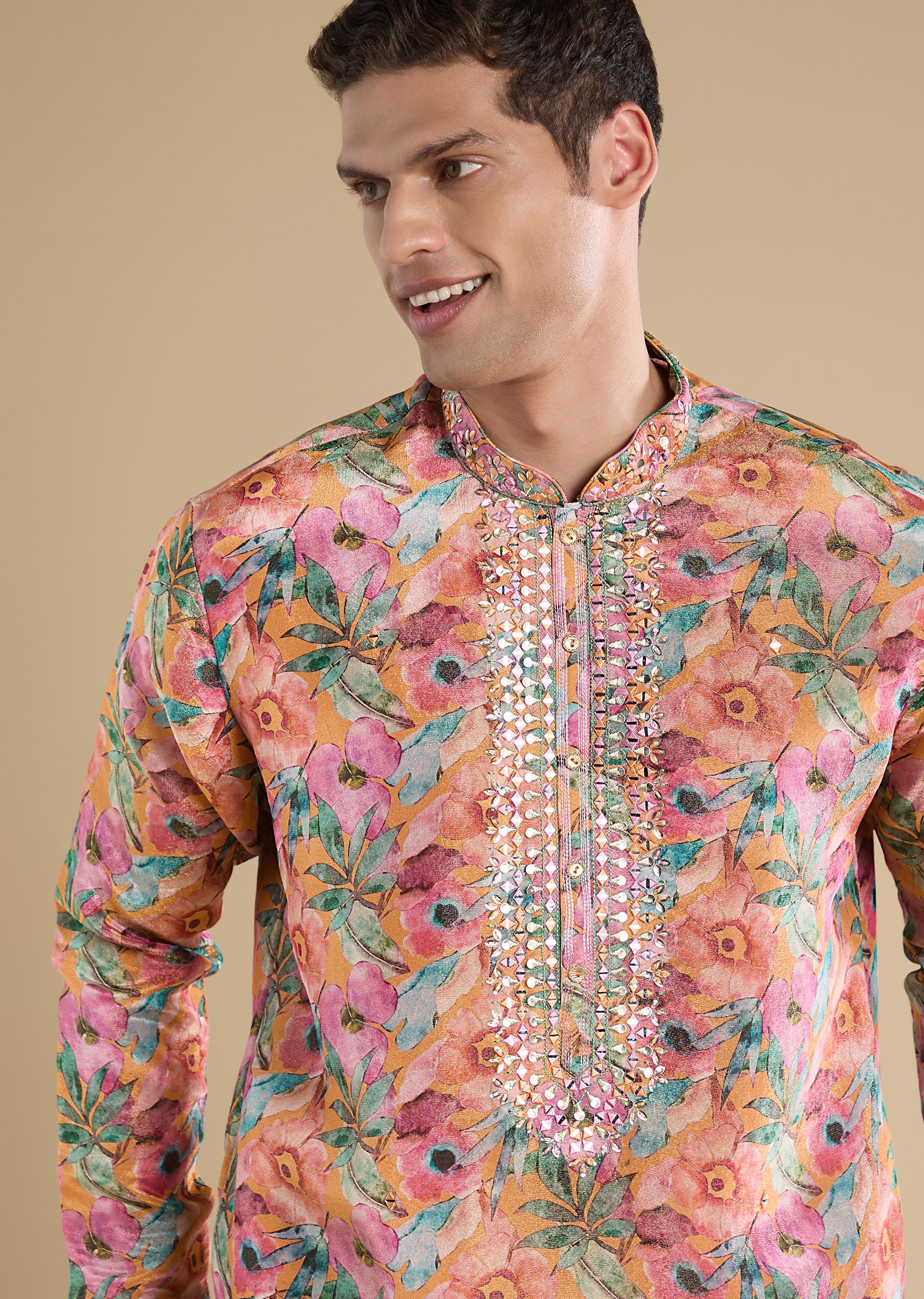 Crafted in polyester, this wine tuxedo set features bead and cut dana detailing for a statement finish. Designed with a mandarin collar, full sleeves and front button closure, it comes... More Product Details