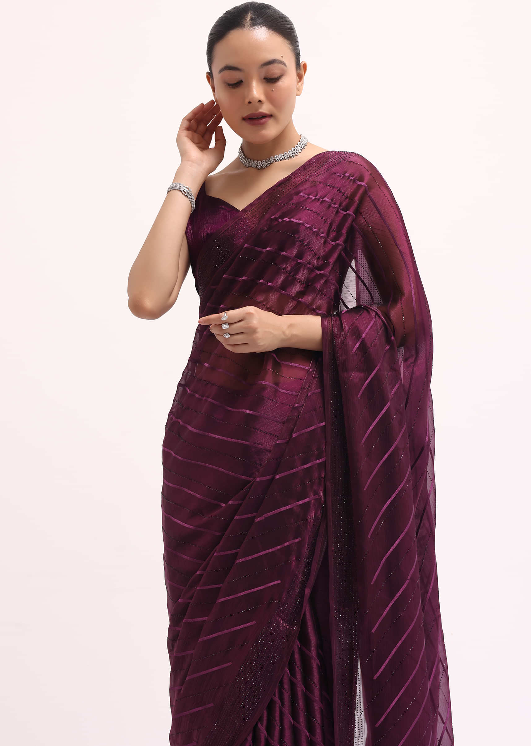 Wine Glass Tissue Saree In Swarovski With Unstitched Blouse