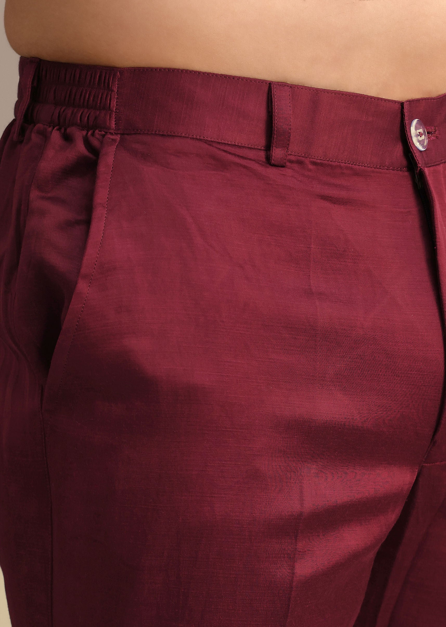 Color co-ordinate your fit with maroon loafers and a matching crystal brooch.