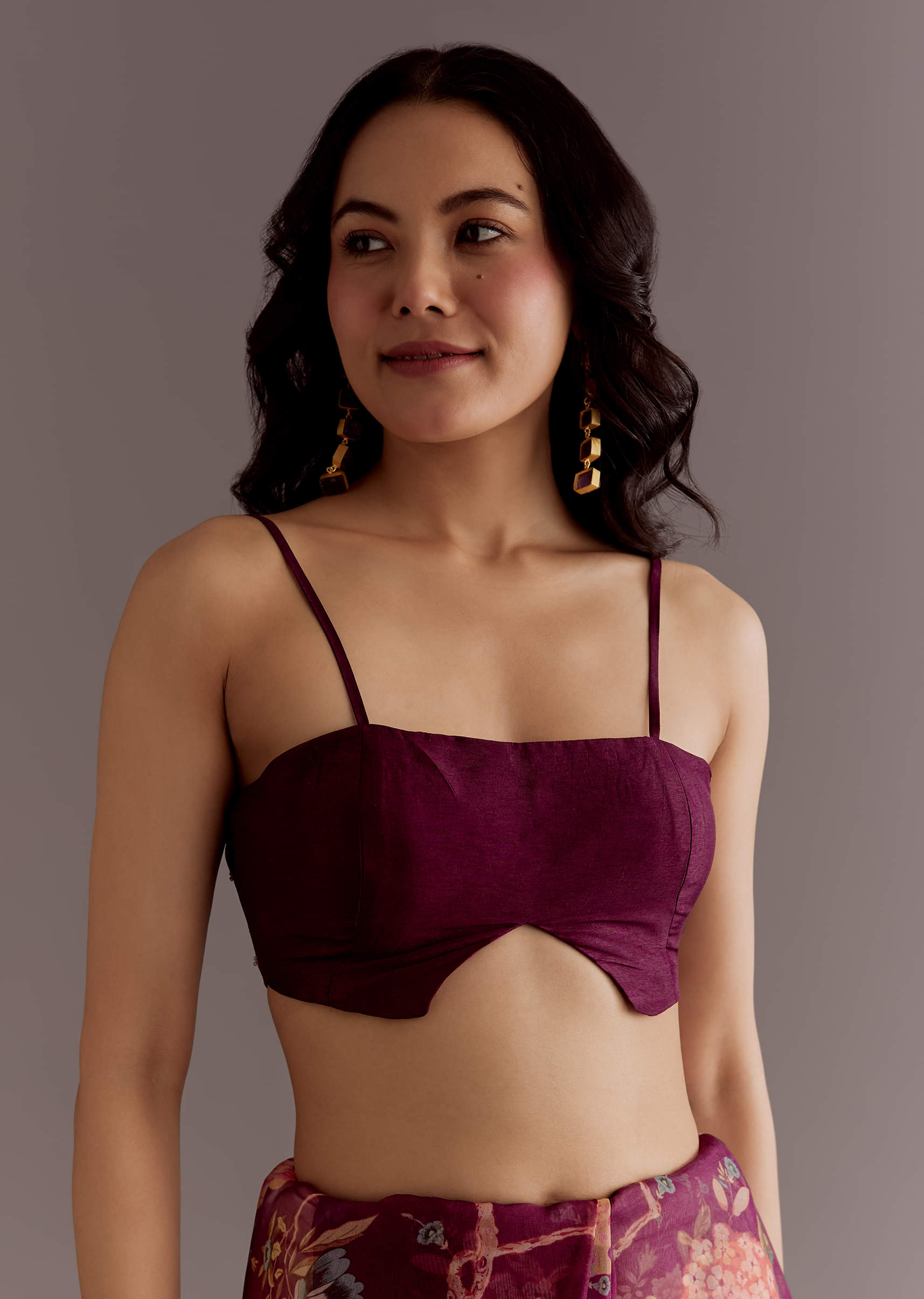 This radiant wine organza saree is alive with floral prints and edged with intricate bead and cutdana embroidery. Bold yet delicate, it’s made for festive entrances. Awarded as the Most... More Product Details