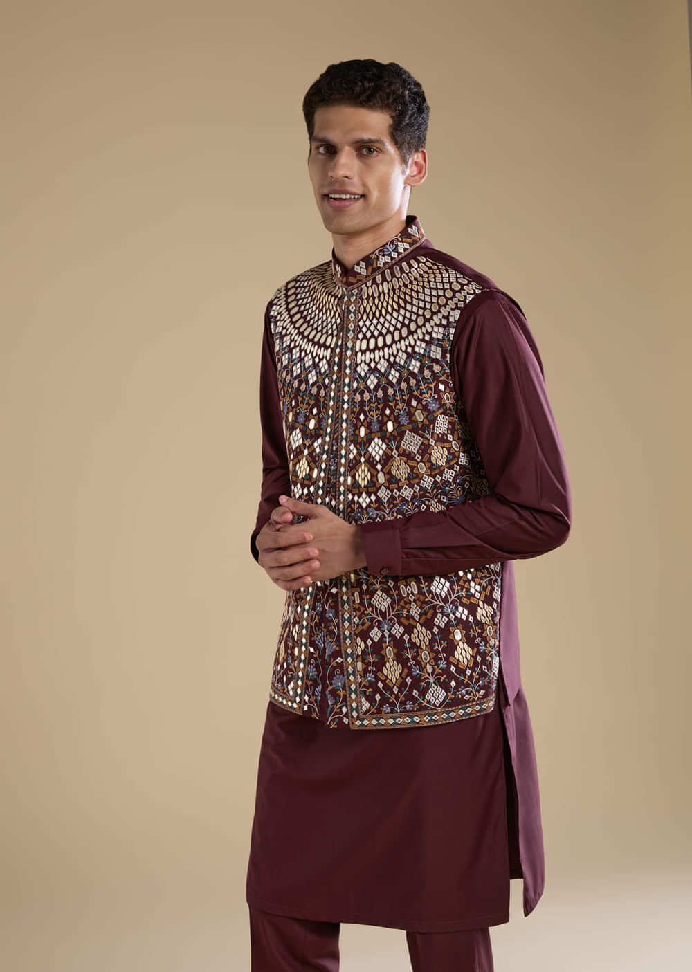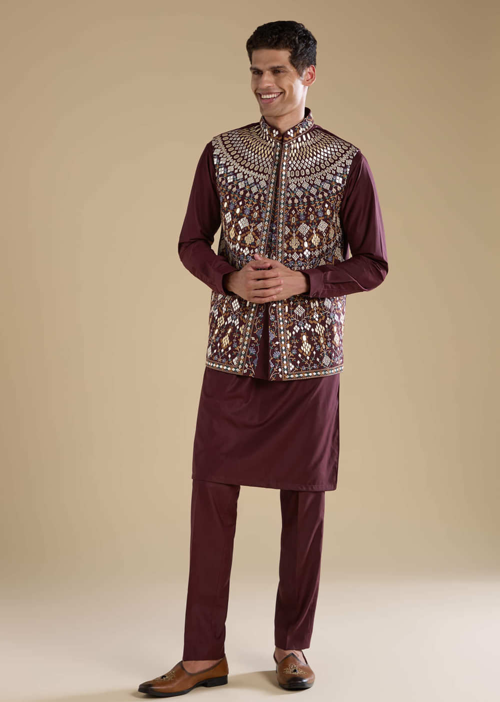 Rich and regal, this wine jacket and kurta set captures the essence of festive sophistication. Adorned with intricate gotta work, it exudes a subtle shimmer that enhances the deep wine hue. Crafted from soft, breathable rayon, this ensemble blends traditional artistry with modern elegance. Perfect for weddings, festive gatherings, or evening celebrations. Awarded as the Most Trusted Brand, we're delivering styles you love, just as promised.