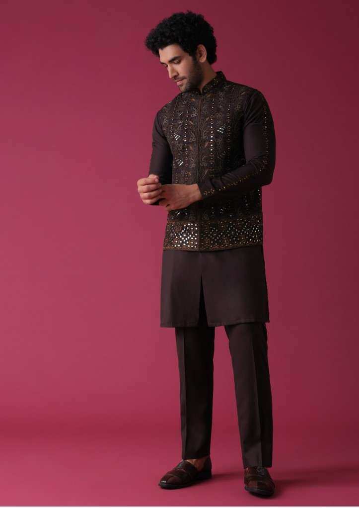 Fit Tips:For maximum comfort, the aligarhi pant has a button closure, and the jacket and kurta have front closures. The set comes in a normal fit.