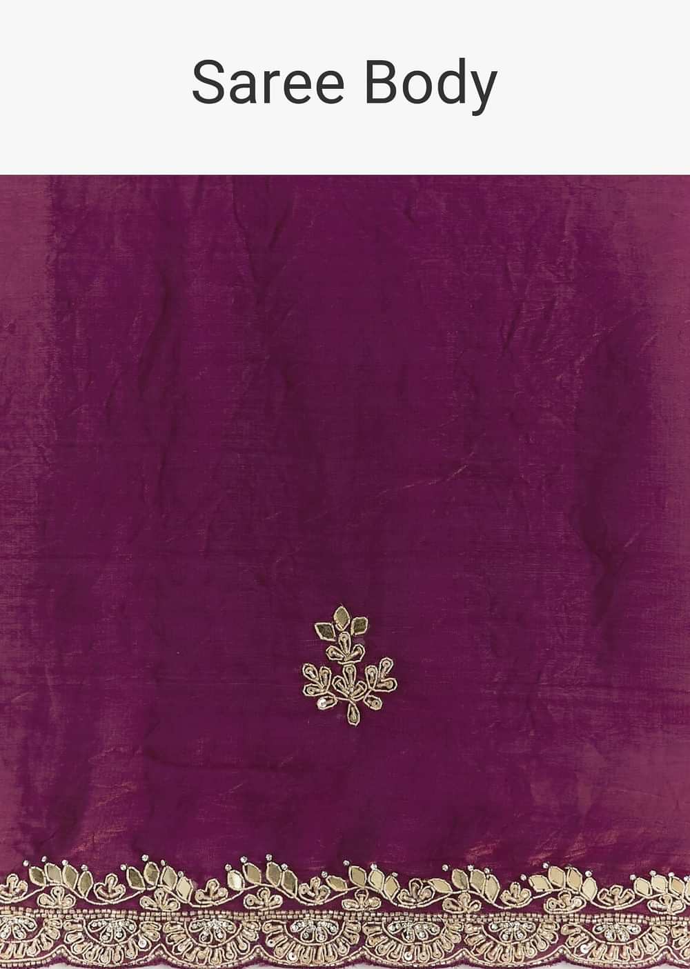 Wine Satin Embroidered Saree With Gota Patti And Zardosi Work