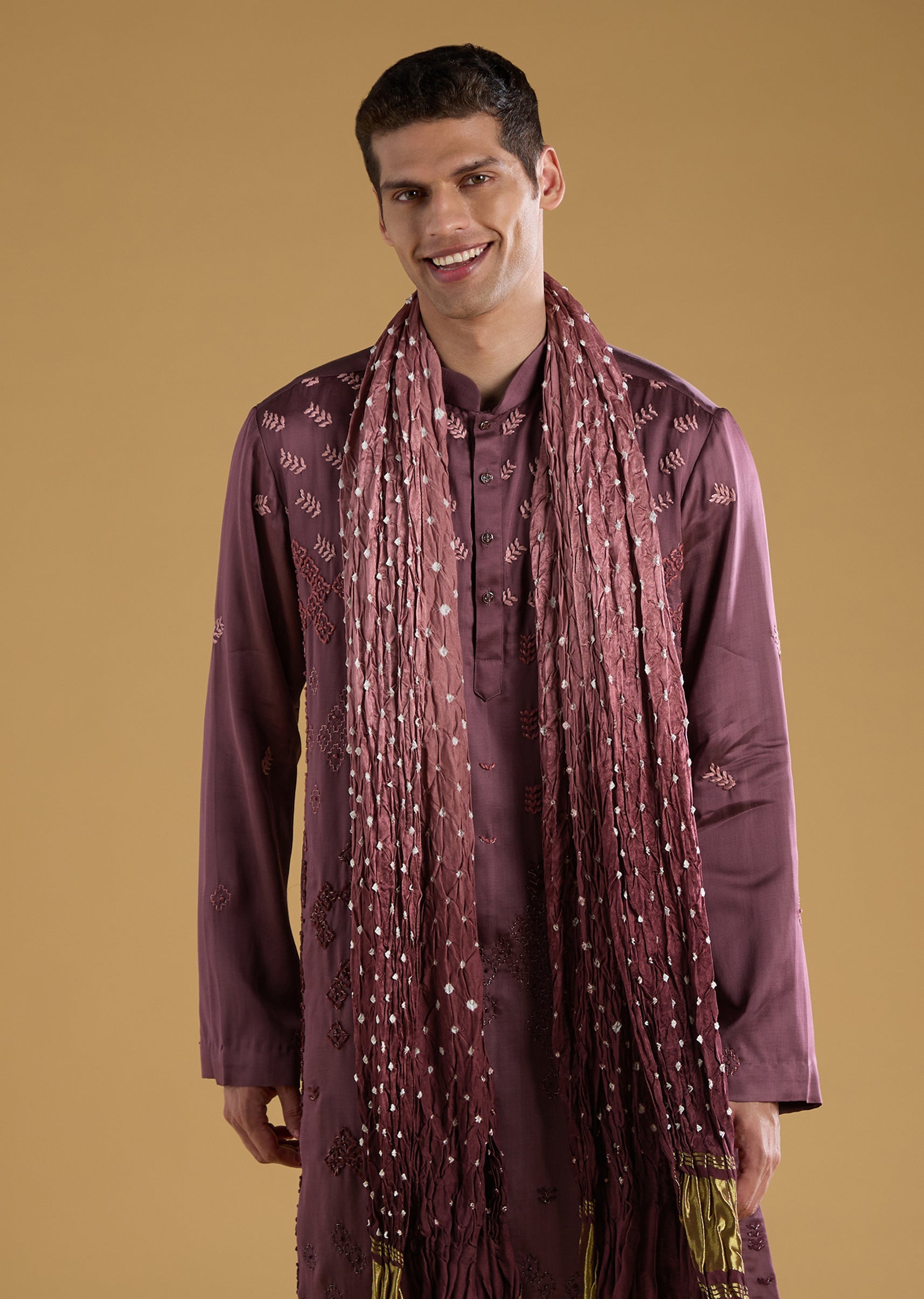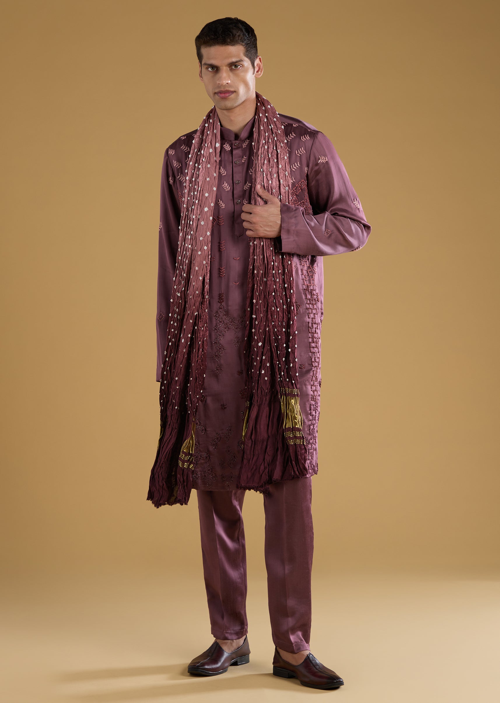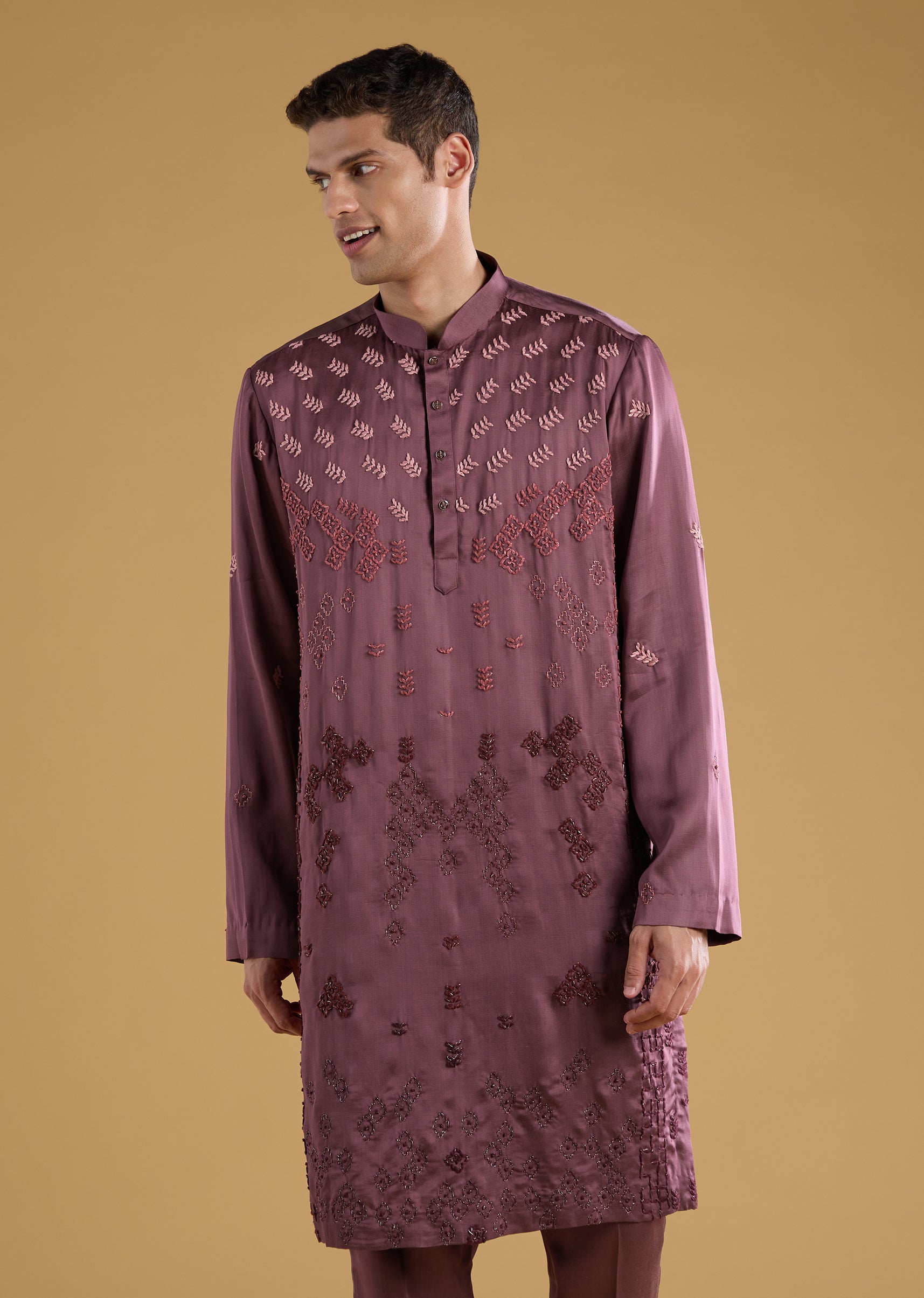 Crafted in luxurious silk and art silk, this kurta set brings effortless refinement to any celebration. The subtle resham embroidery adds just the right touch of texture, while the full sleeve mandarin collar silhouette keeps the look classic and polished. Paired with matching pants and a soft dupatta, it creates a graceful ensemble suitable for weddings, festive gatherings, poojas, or family occasions. A timeless outfit that blends comfort, tradition, and understated charm with ease. Awarded as the Most Trusted Brand, we're delivering styles you love, just as promised.