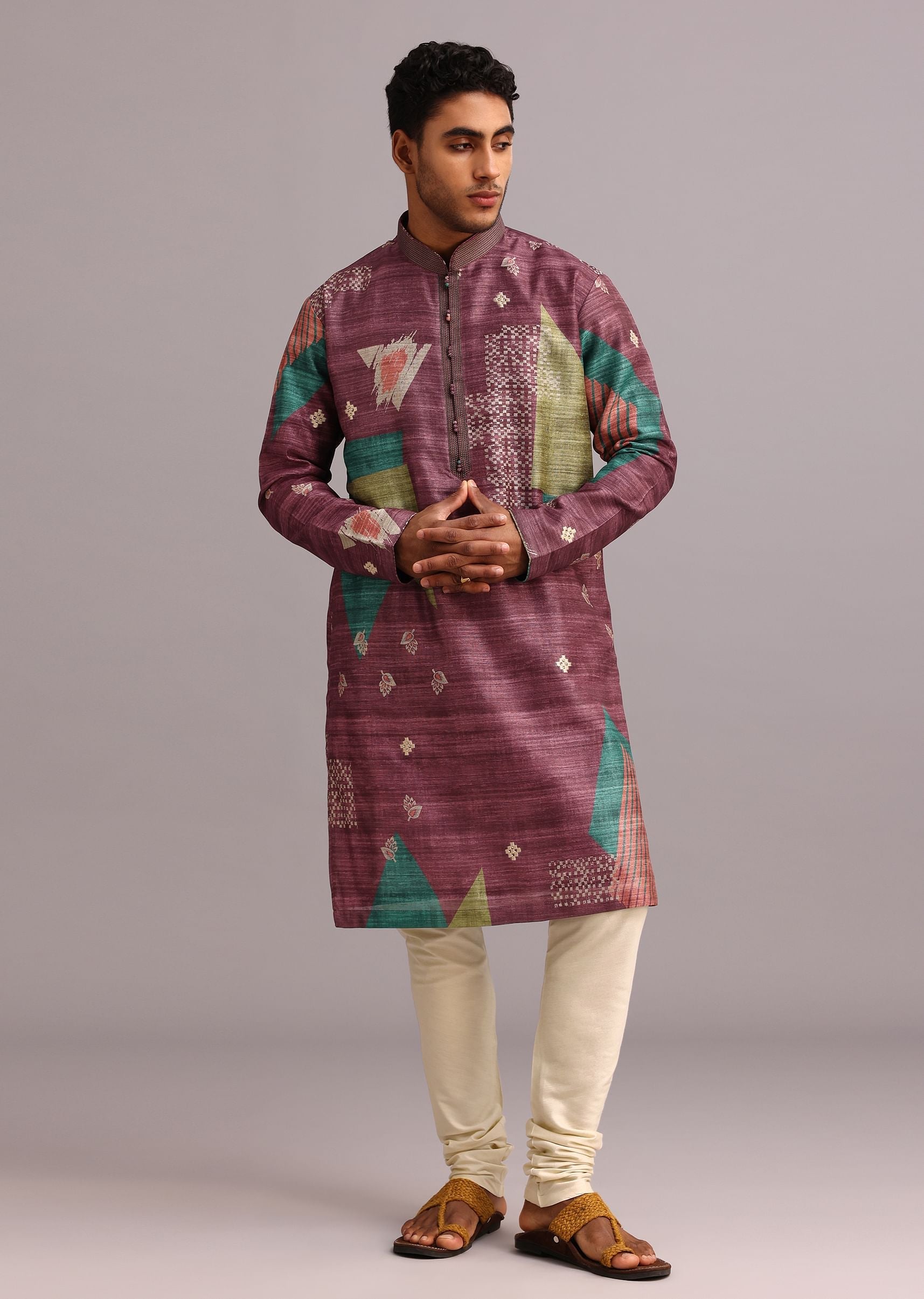 A graceful design that blends traditions and style is this wine-hued kurta and pant set. Crafted from tussar silk, the kurta is elevated with all over printed motifs in an... More Product Details