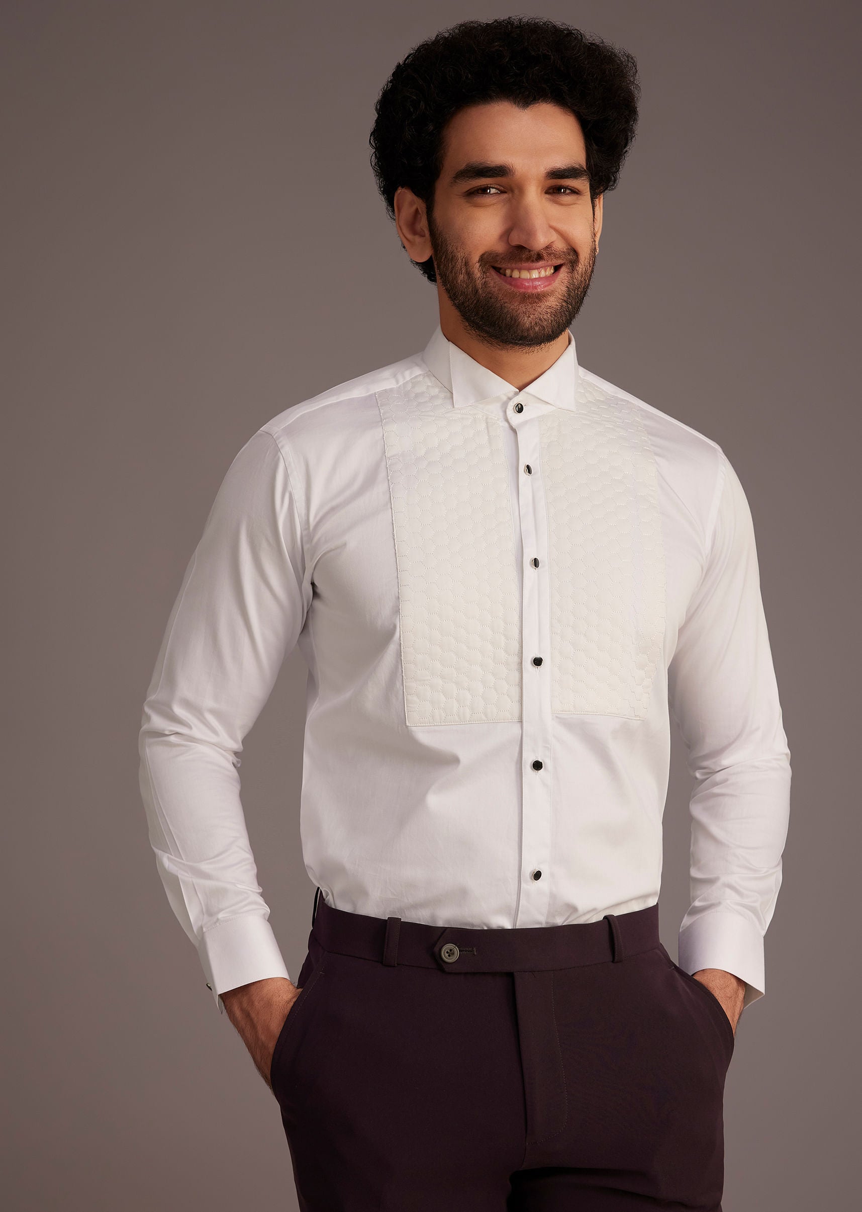 This wine tuxedo combines elegance and boldness with its intricate beaded detailing across the shoulders and hem paired with luxurious satin peak lapels. The rich wine hue complemented by a tailored waistcoat and trousers makes it a perfect choice for receptions black-tie events and gala evenings. The attention to detail and refined craftsmanship ensure a sophisticated and stylish look that commands attention. A modern yet timeless ensemble for those who appreciate understated glamour. Awarded as the Most Trusted Brand, we're delivering styles you love, just as promised.