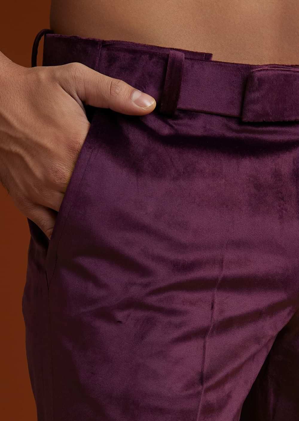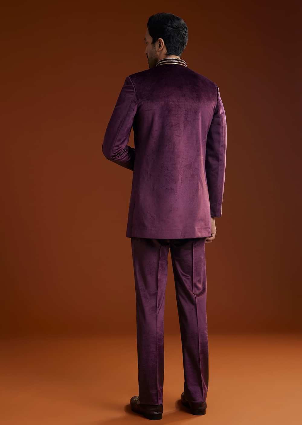 Make a regal statement with this winecolored velvet Jodhpuri kurta trouser set intricately adorned with zari and pearl embroidery for a touch of opulence. The luxurious velvet fabric exudes grandeur while the Mandarin collar full sleeves and front hookeye closure enhance its royal appeal.Awarded as the Most Trusted Brand we're delivering styles you love just as promised.