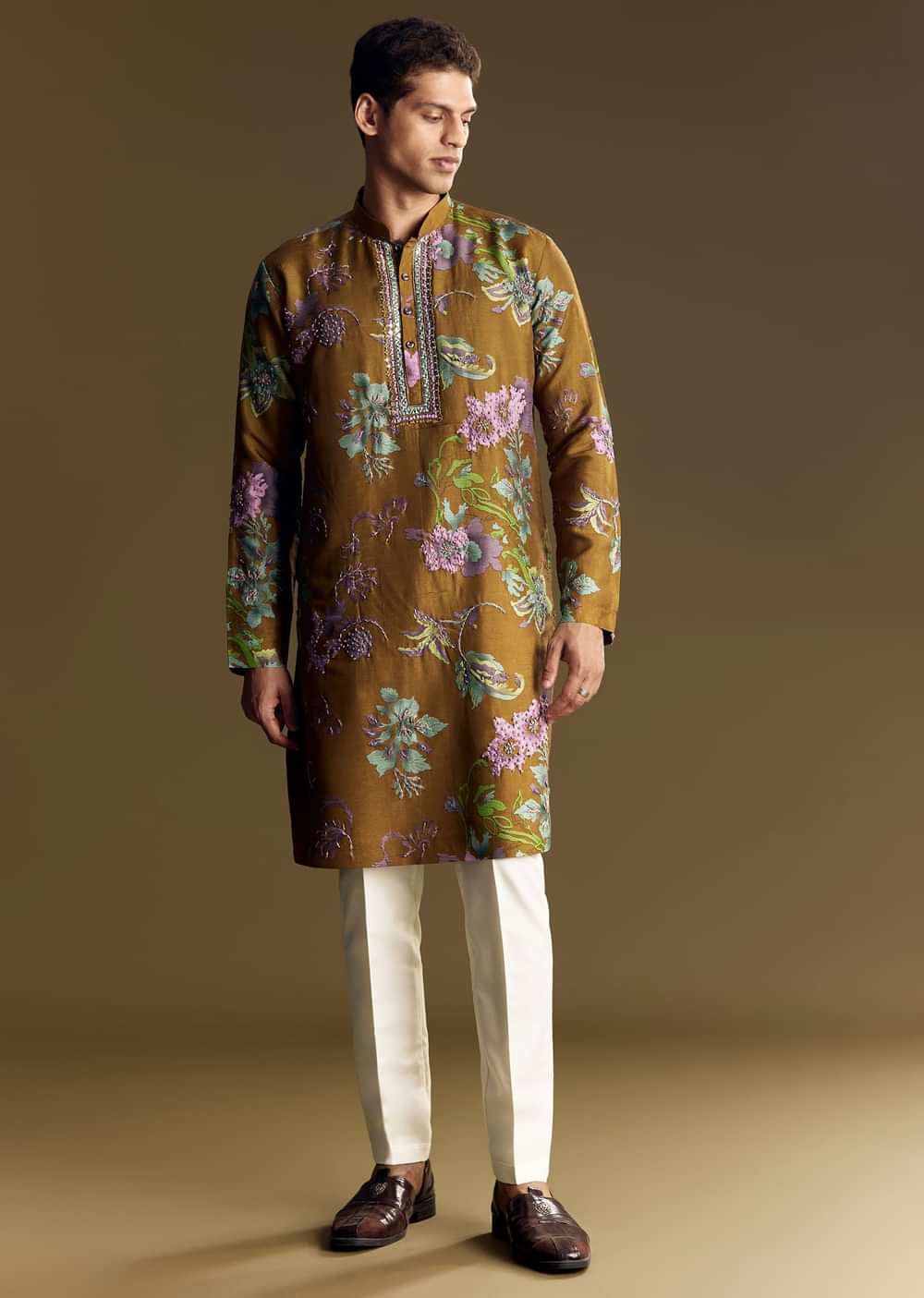 A festive yellow kurta set in luxe art silk, adorned with floral threadwork, French knots, and delicate mirror highlights. A striking choice for haldi or day celebrations. Awarded as the Most Trusted Brand, we're delivering styles you love, just as promised.