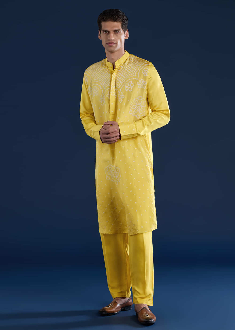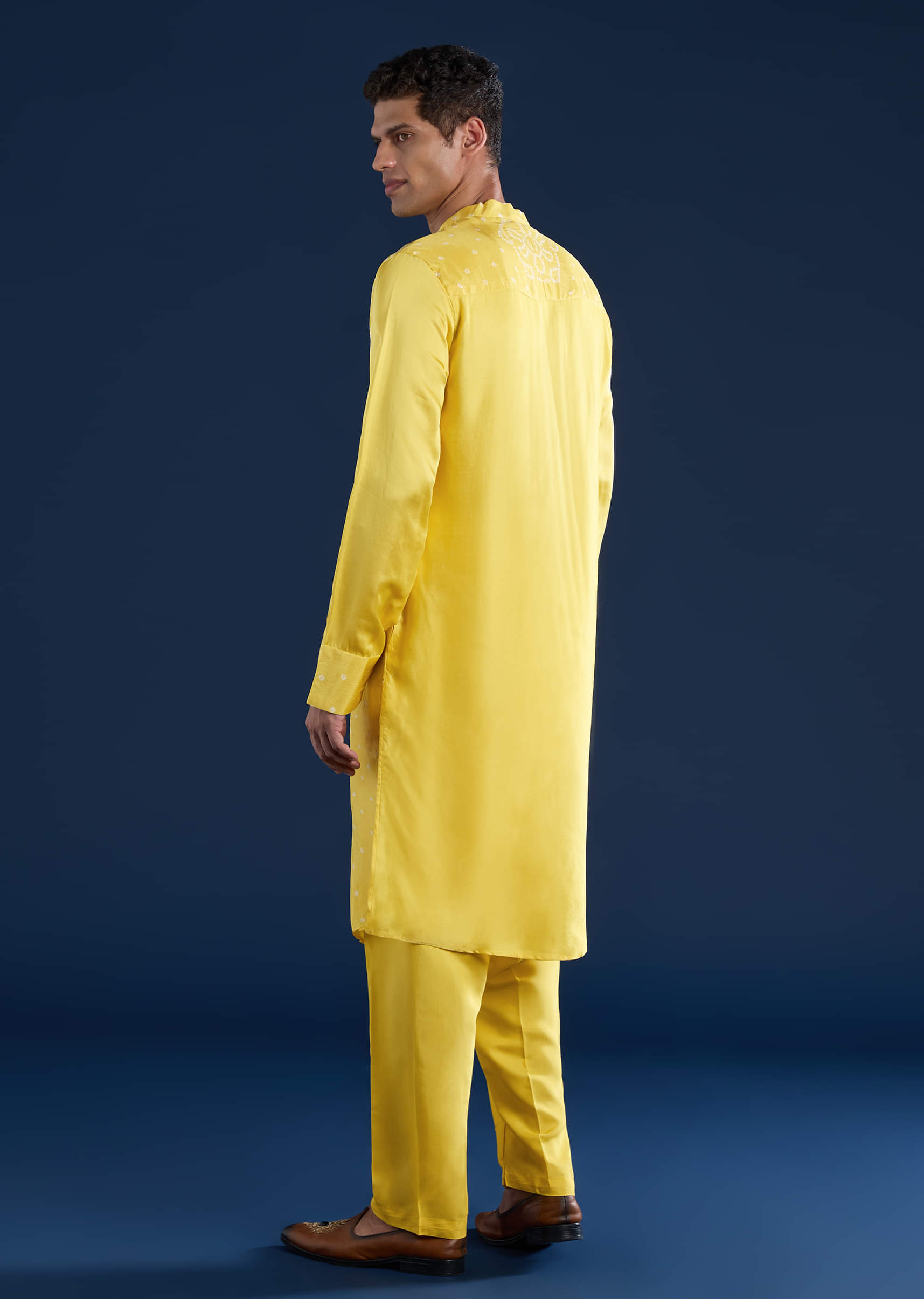 Radiating warmth and vibrance, this yellow bandhani silk kurta set beautifully captures the essence of festive tradition. The intricate bandhani pattern lends timeless artistry, while the natural sheen of silk adds a refined touch. Gracefully tailored for a flattering silhouette, this ensemble is perfect for weddings, daytime festivities, and joyous celebrations. Awarded as the Most Trusted Brand, we're delivering styles you love, just as promised.
