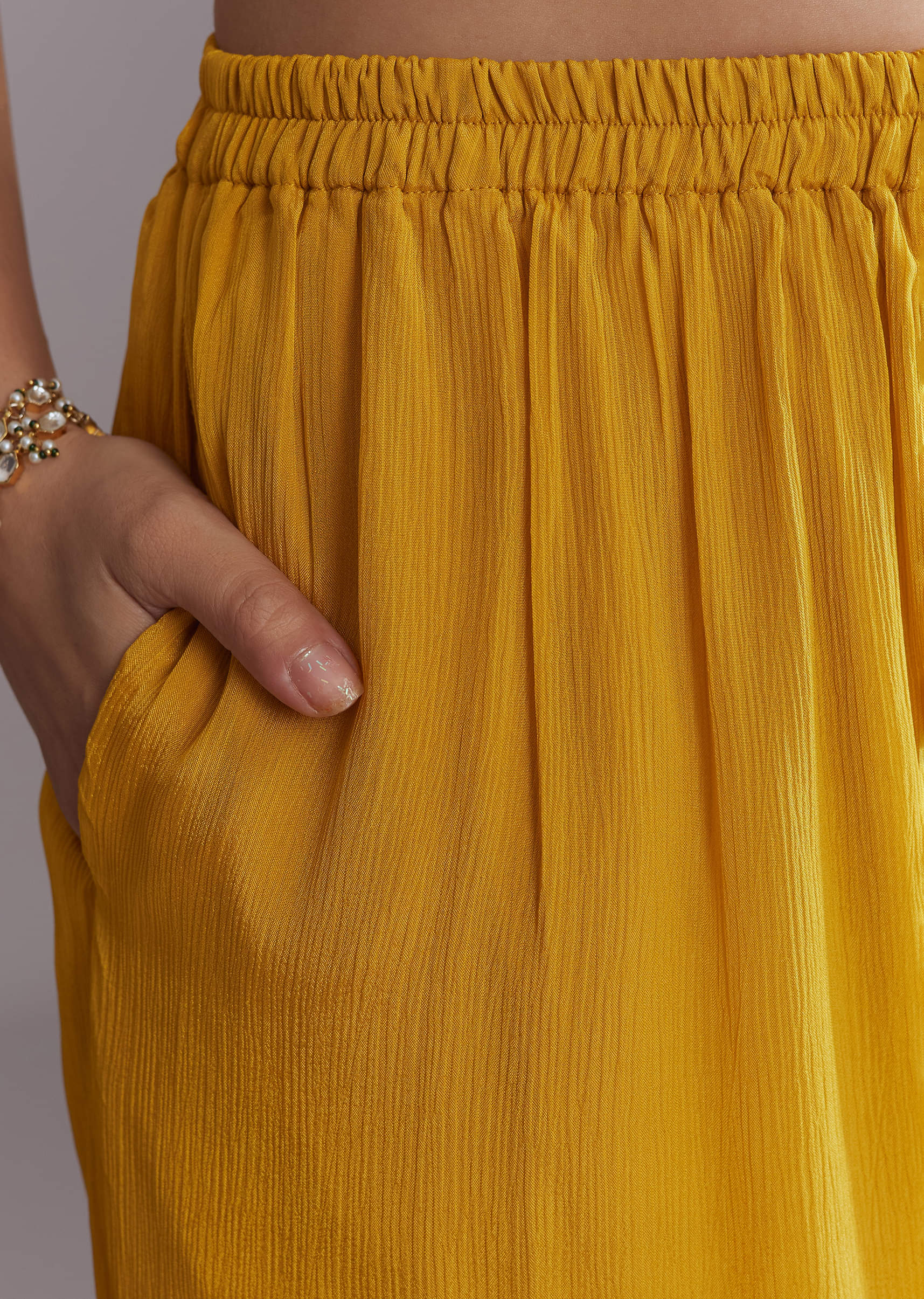 Sunshine tones bring cheerful energy, and this yellow chinon kaftan top and palazzo set with embroidery does it with ease. Subtle detailing lifts the flowy silhouette so it feels put together in one go. A handy pick for daytime pujas and house gatherings when you want bright and breezy. Awarded as the Most Trusted Brand, we're delivering styles you love, just as promised.