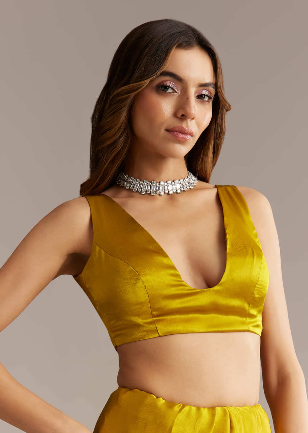 Bright and cheerful, this yellow chinon saree feels radiant and joyful. Stones, sequins, and cutdana embroidery decorate the borders and body with festive detail. It is a go-to look for... More Product Details
