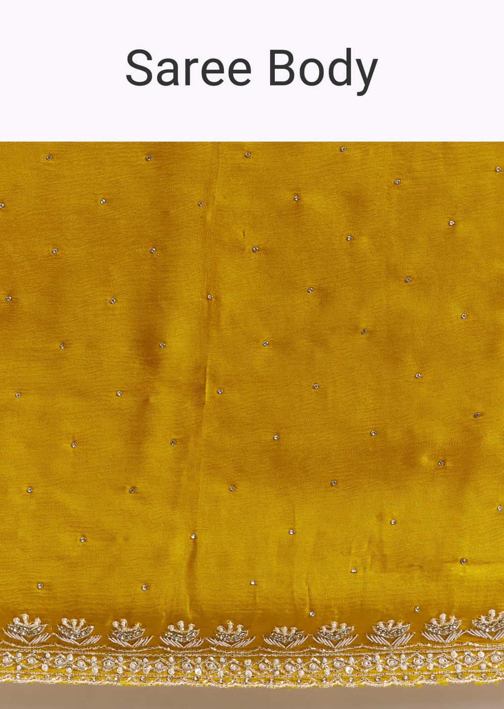 Yellow Chinon Saree With Stone And Sequin Embroidery