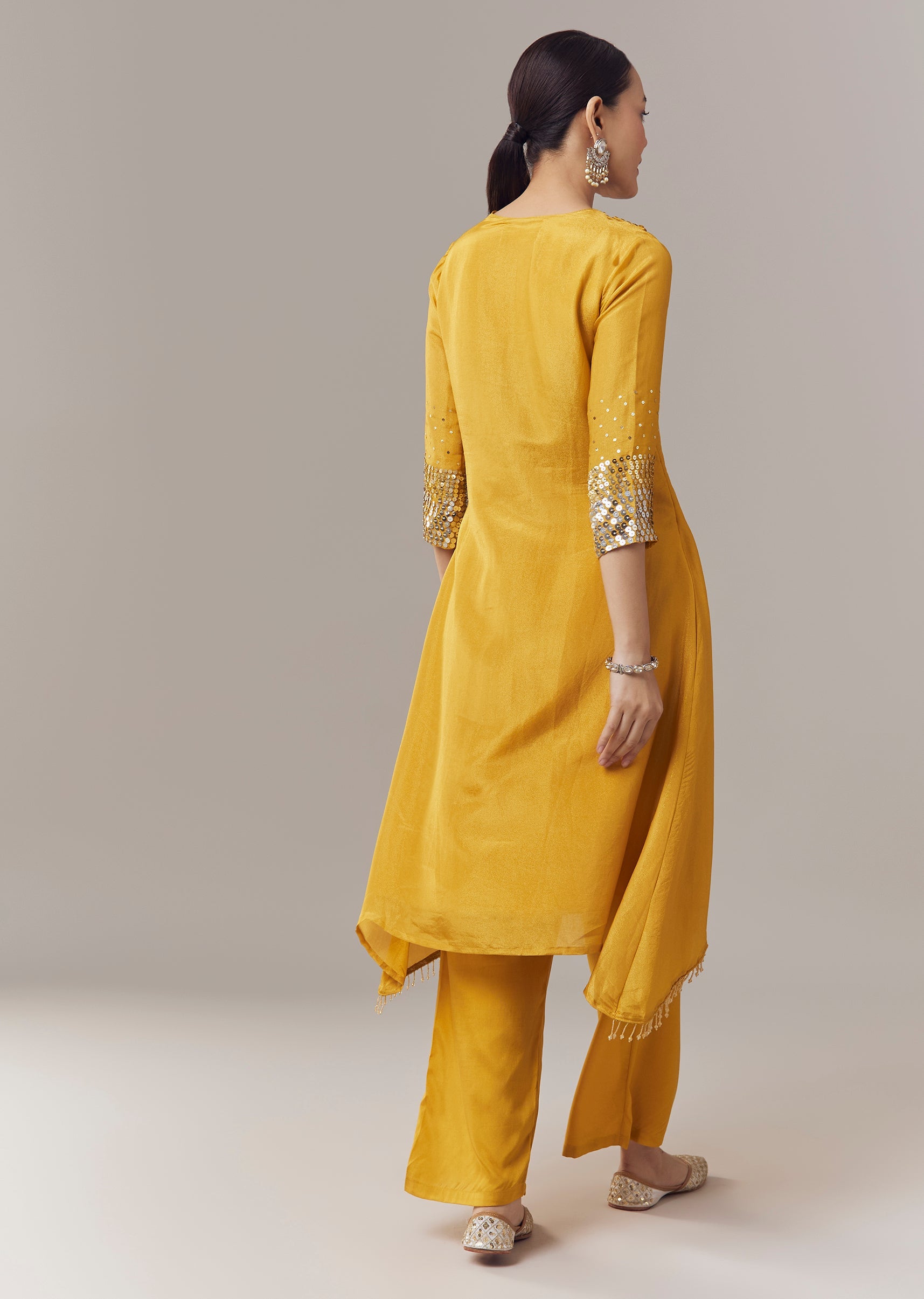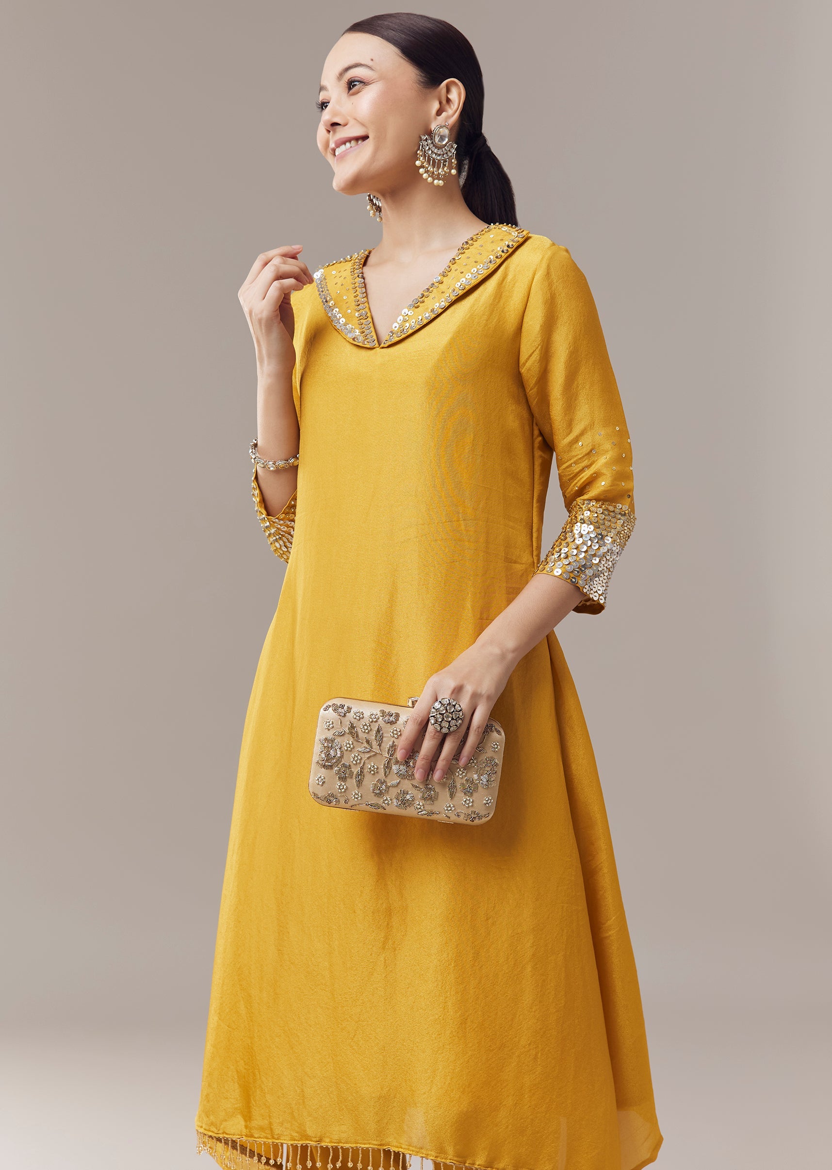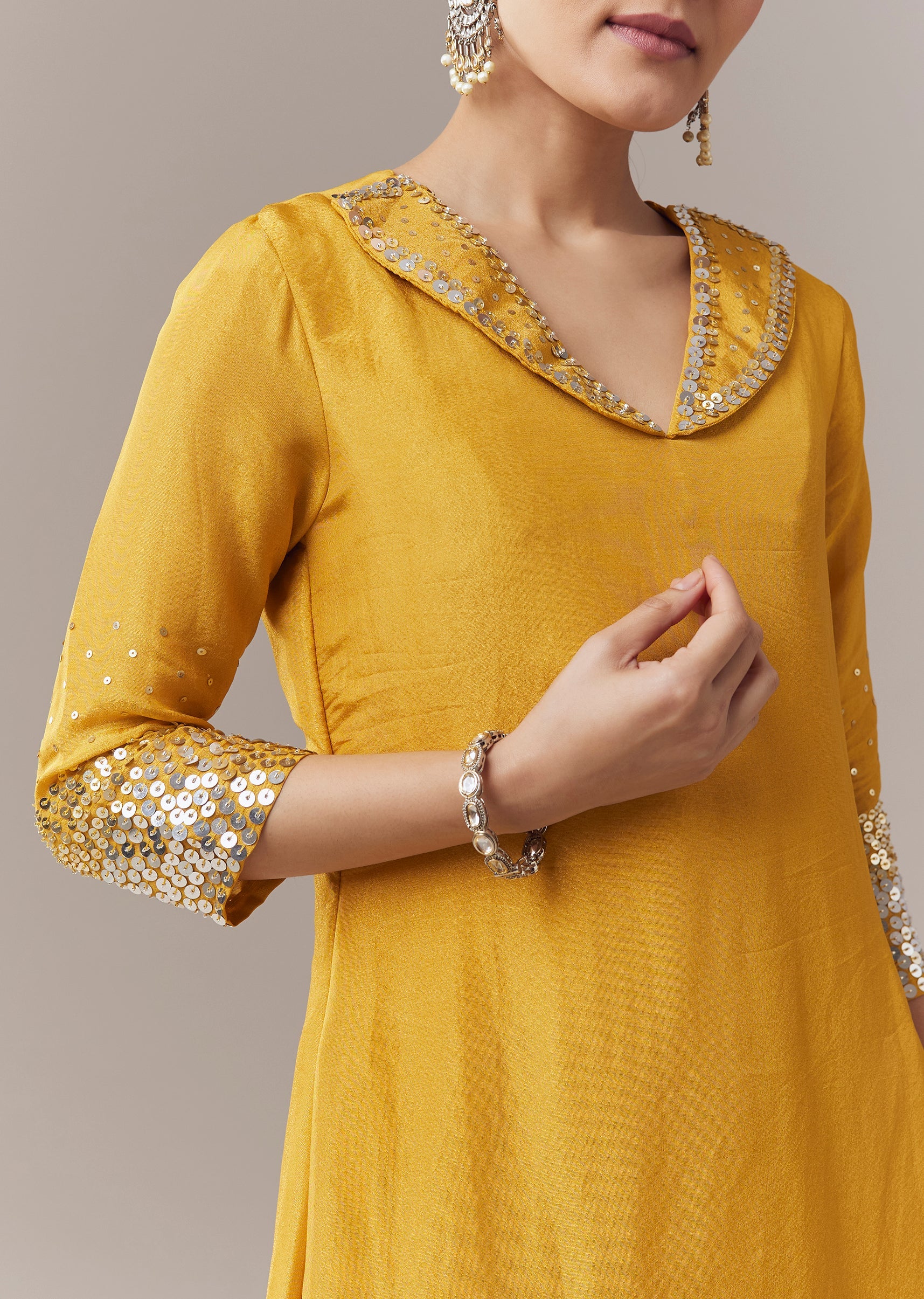 Bright and festive, this yellow coord set kurti is crafted in lightweight tissue fabric for a comfortable and elegant feel. The kurti is adorned with delicate sequins work that adds... More Product Details