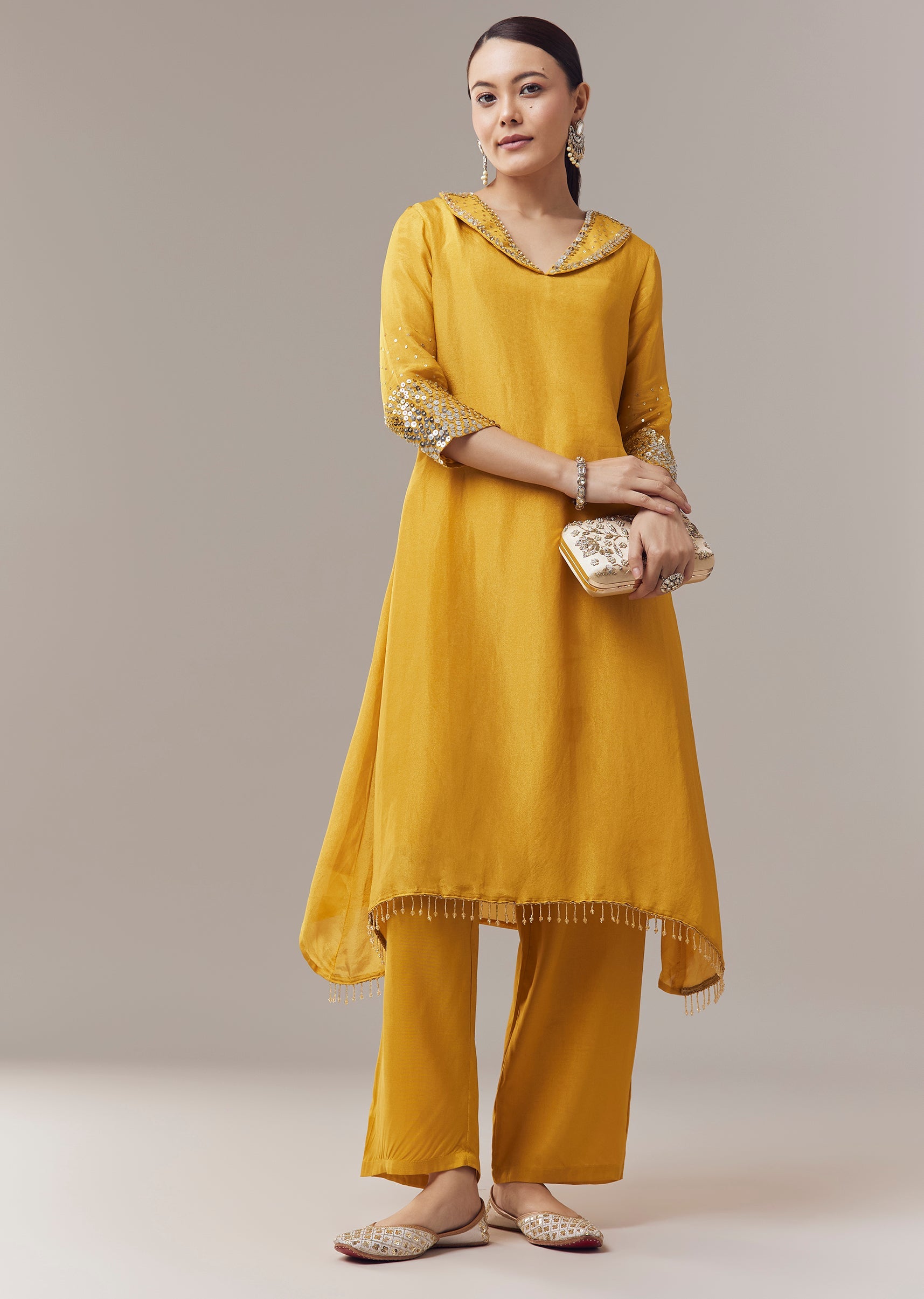 Bright and festive, this yellow coord set kurti is crafted in lightweight tissue fabric for a comfortable and elegant feel. The kurti is adorned with delicate sequins work that adds subtle shimmer and festive charm. Designed for a flattering and graceful fit, it pairs effortlessly with coordinating bottoms to create a complete celebratory ensemble. Awarded as the Most Trusted Brand, we're delivering styles you love, just as promised.