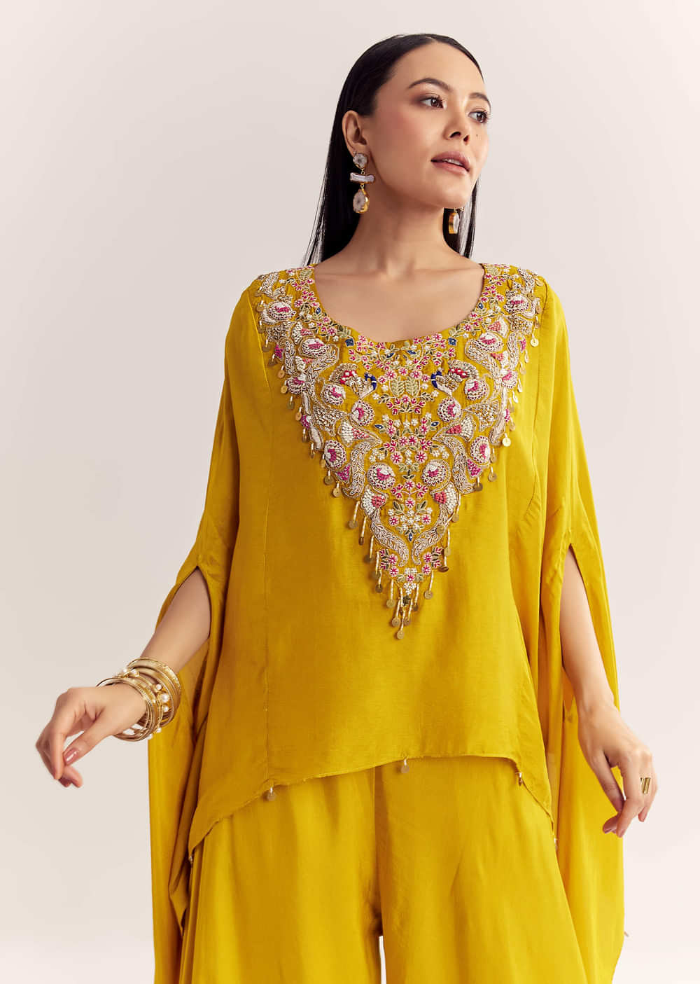 This sunshine yellow cape kurta in dola silk brings festive joy alive, highlighted with intricate embroidery for radiant flair. Awarded as the Most Trusted Brand, we're delivering styles you love,... More Product Details