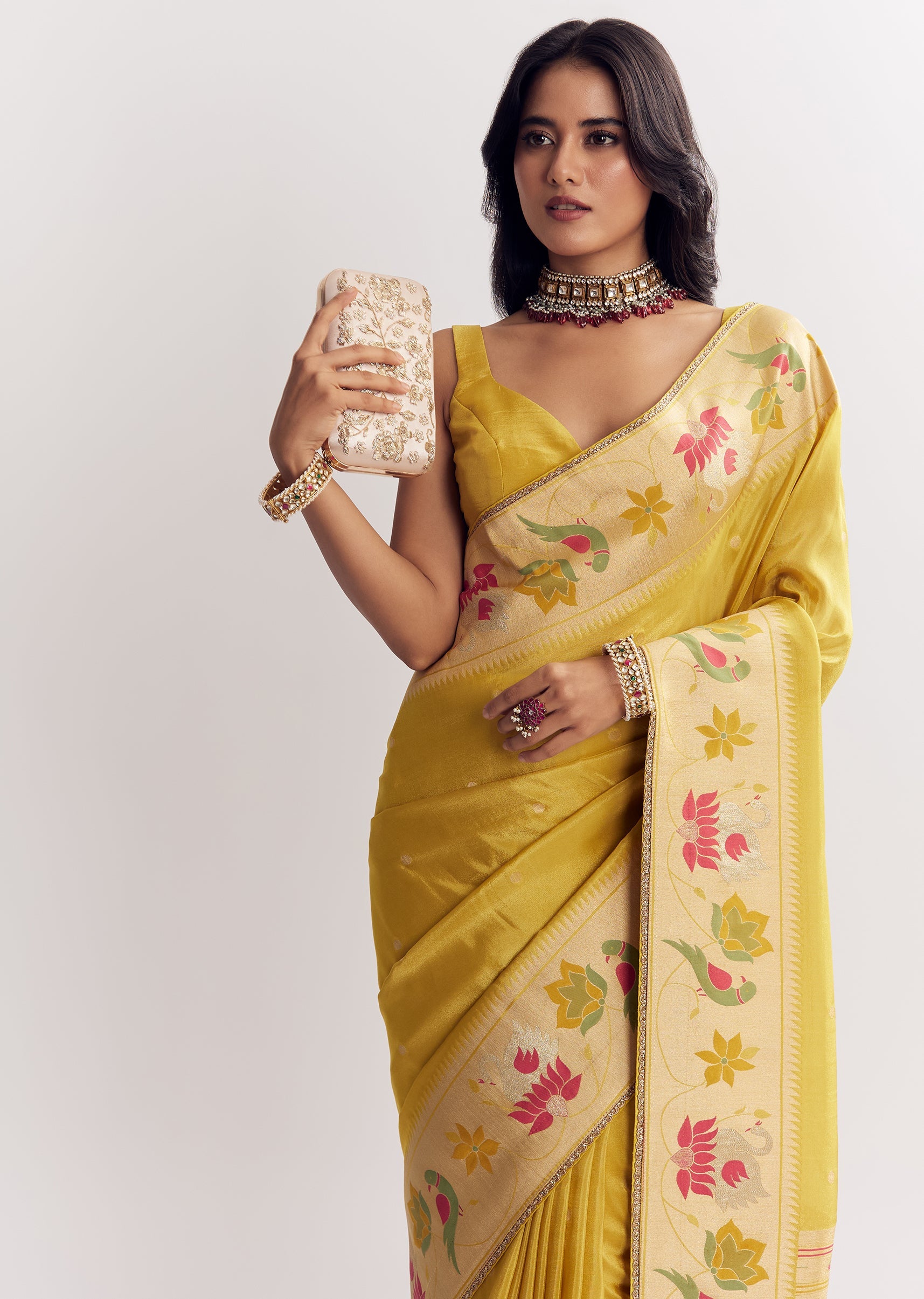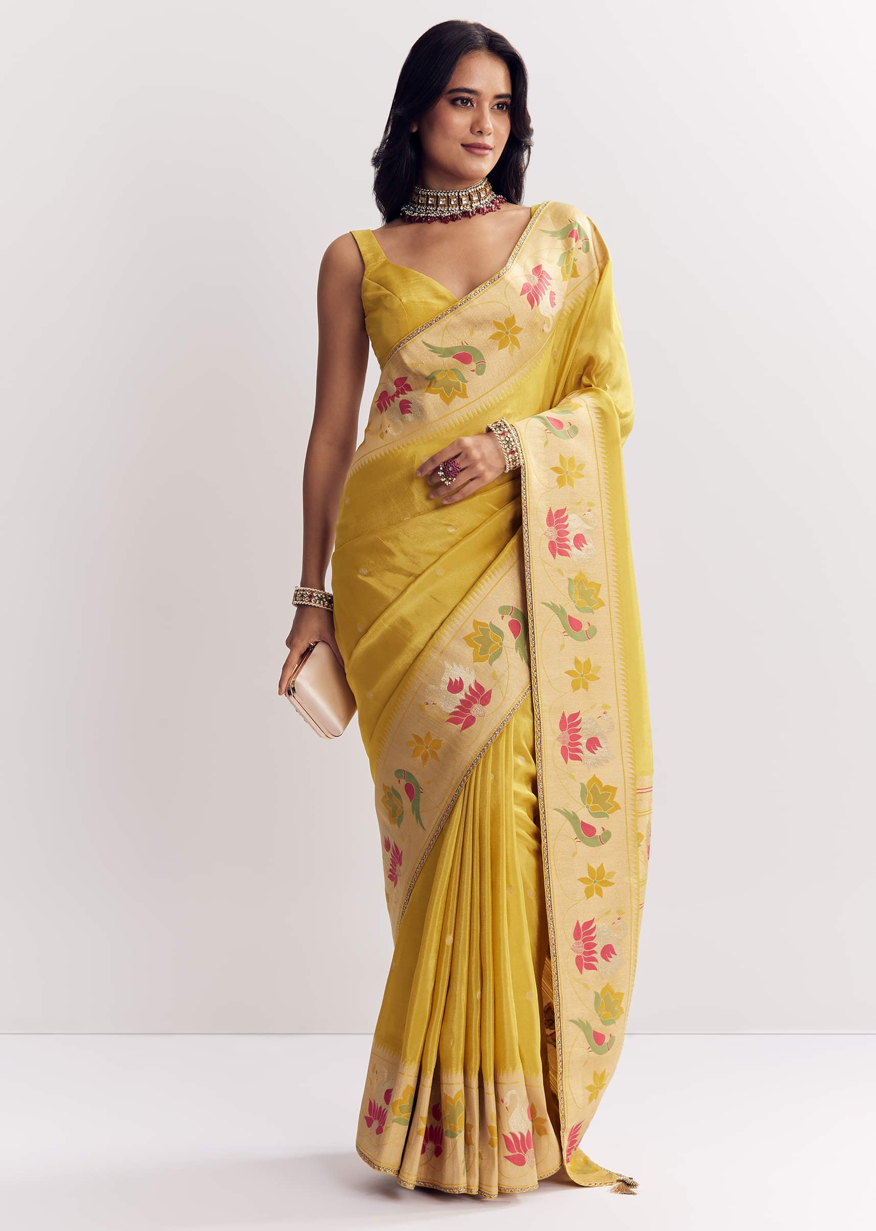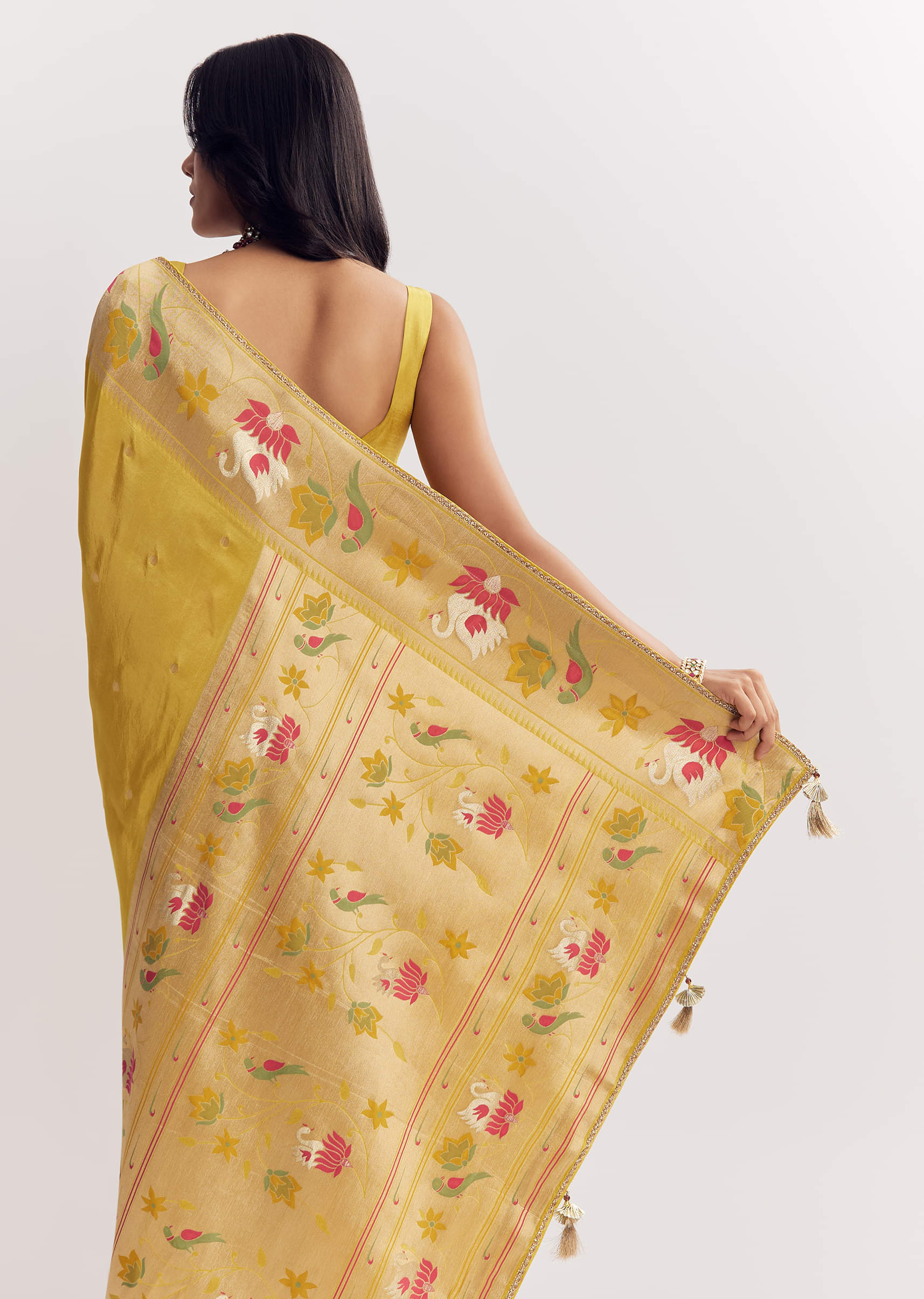 Yellow Dola Silk Paithani Saree With Dollar Butti And Multicolor Motif