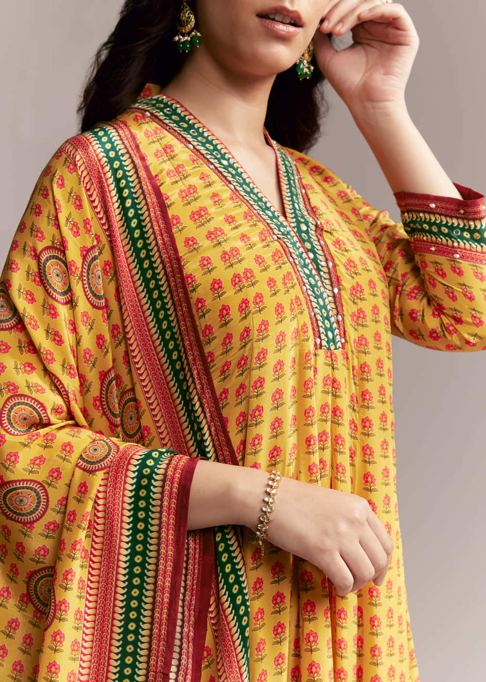 Yellow Floral Anarkali Set