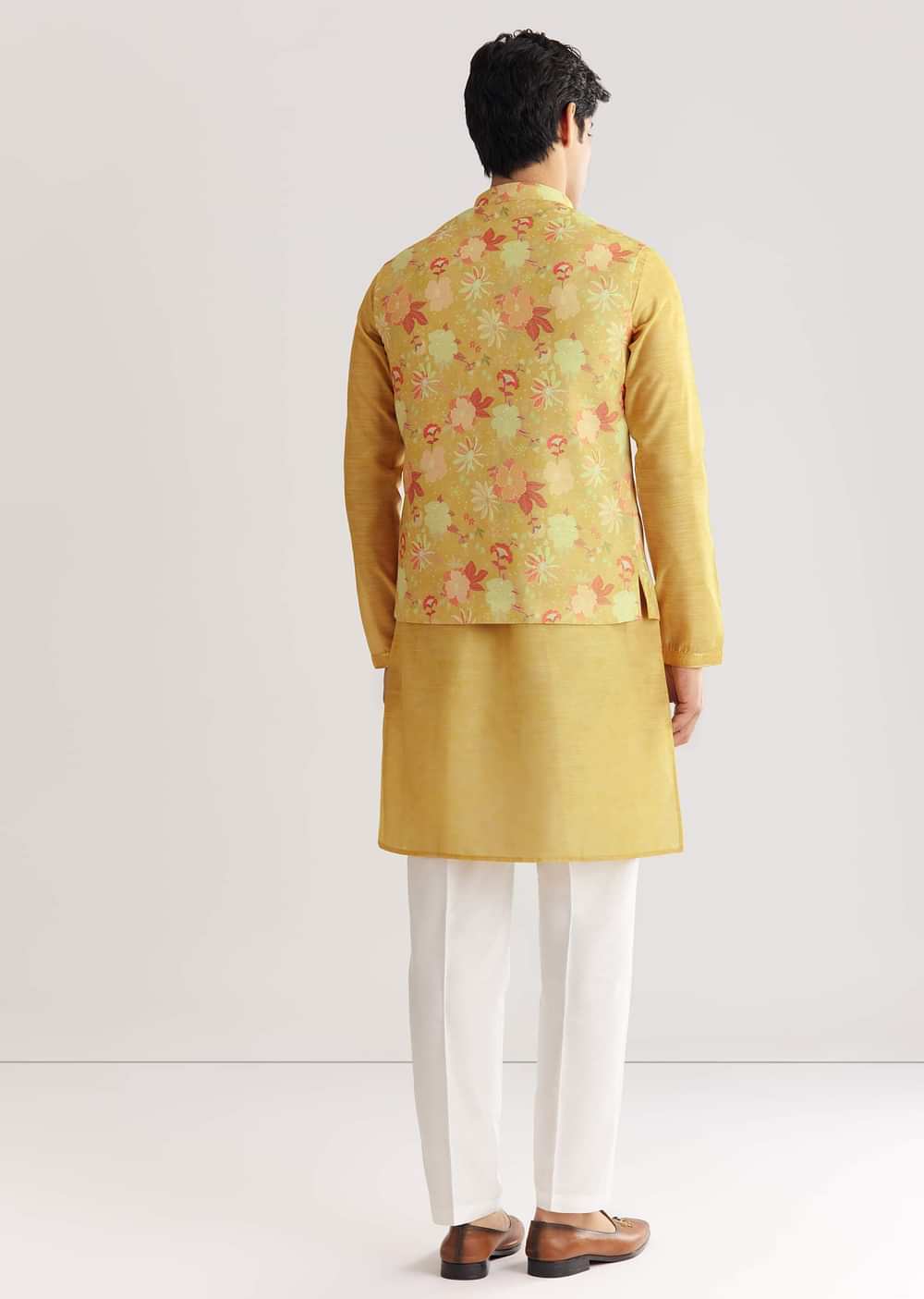 As radiant as a sunrise over royal dunes, this yellow polyester jacket kurta set lights up every celebration with cheer and charisma. Awarded as the Most Trusted Brand, we're delivering... More Product Details
