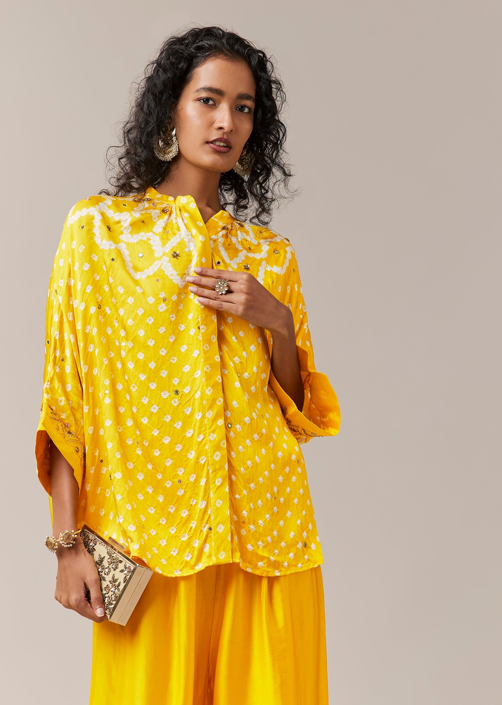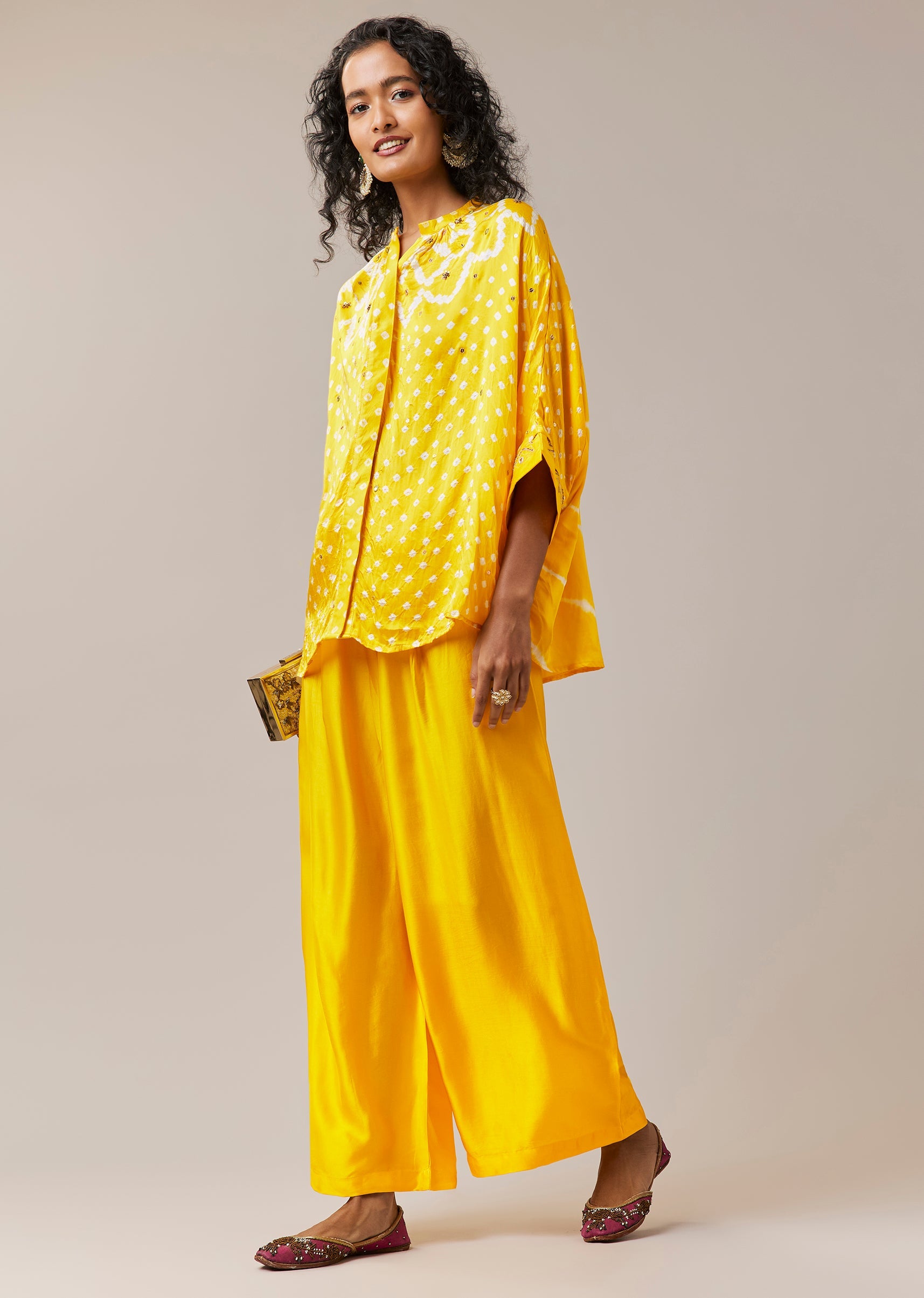 Yellow Hand Dyed Bandhani and Leheriya Pant Set with Sequin
