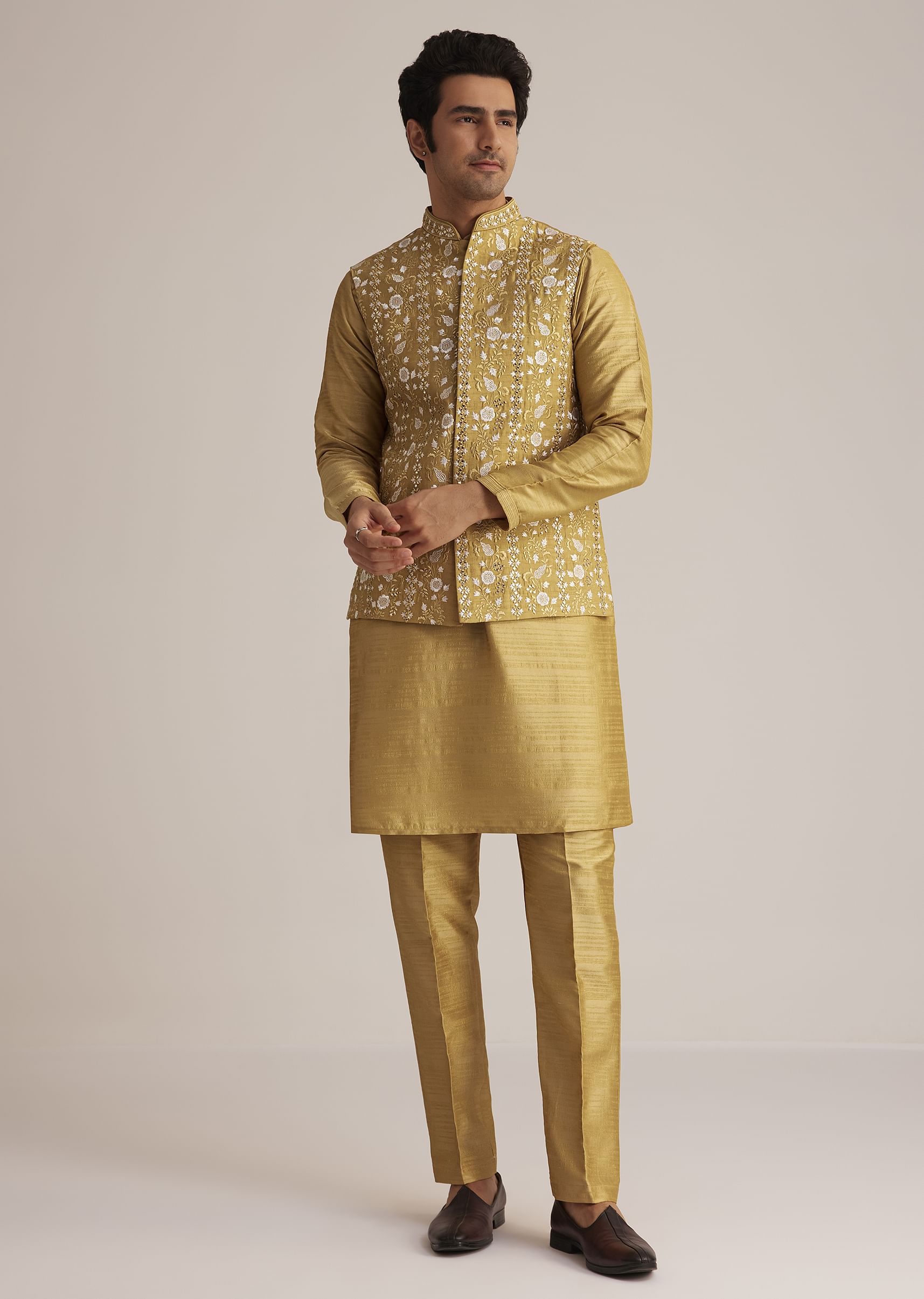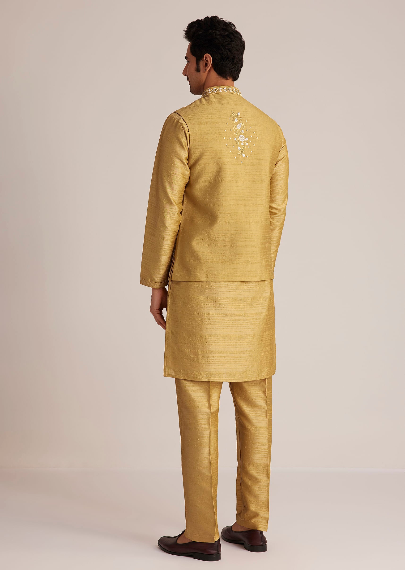 Yellow Kurta Pant Set With Embroidered Nehru Jacket