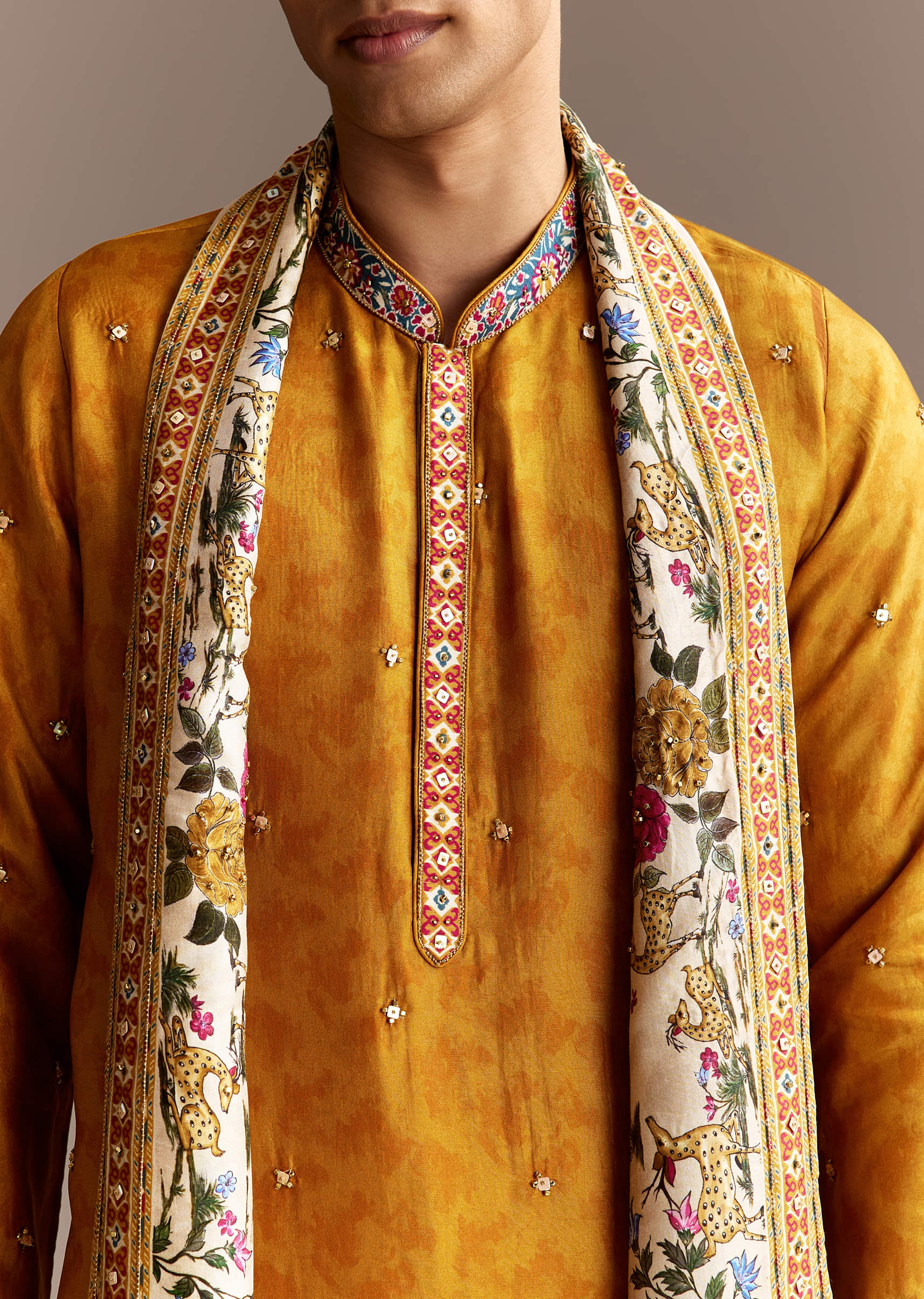 Crafted in a cheerful yellow hue, this kurta set is tailored with a mandarin collar and full sleeves—ideal for day-time festivities like haldi and mehendi. Its classic cut keeps things... More Product Details