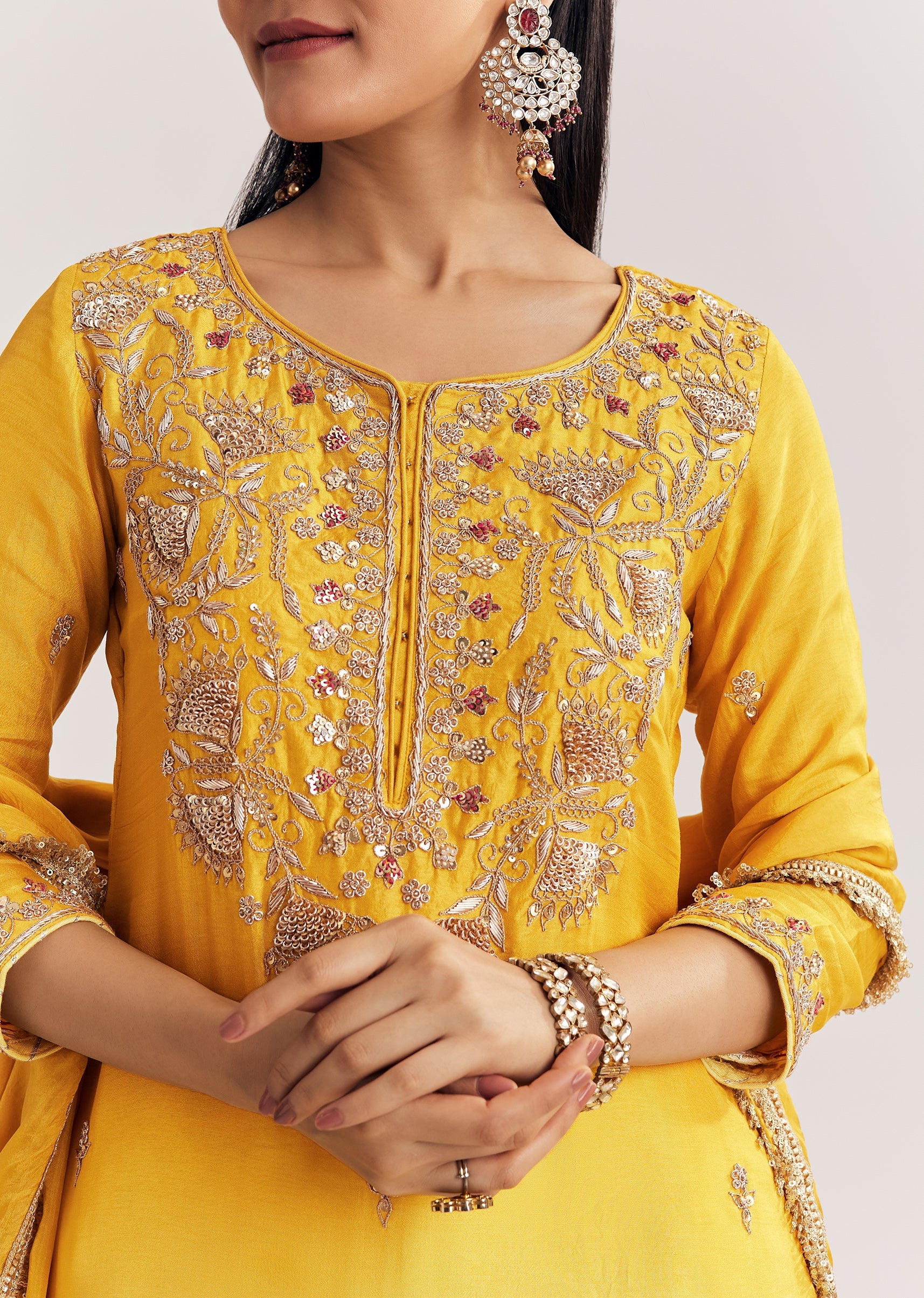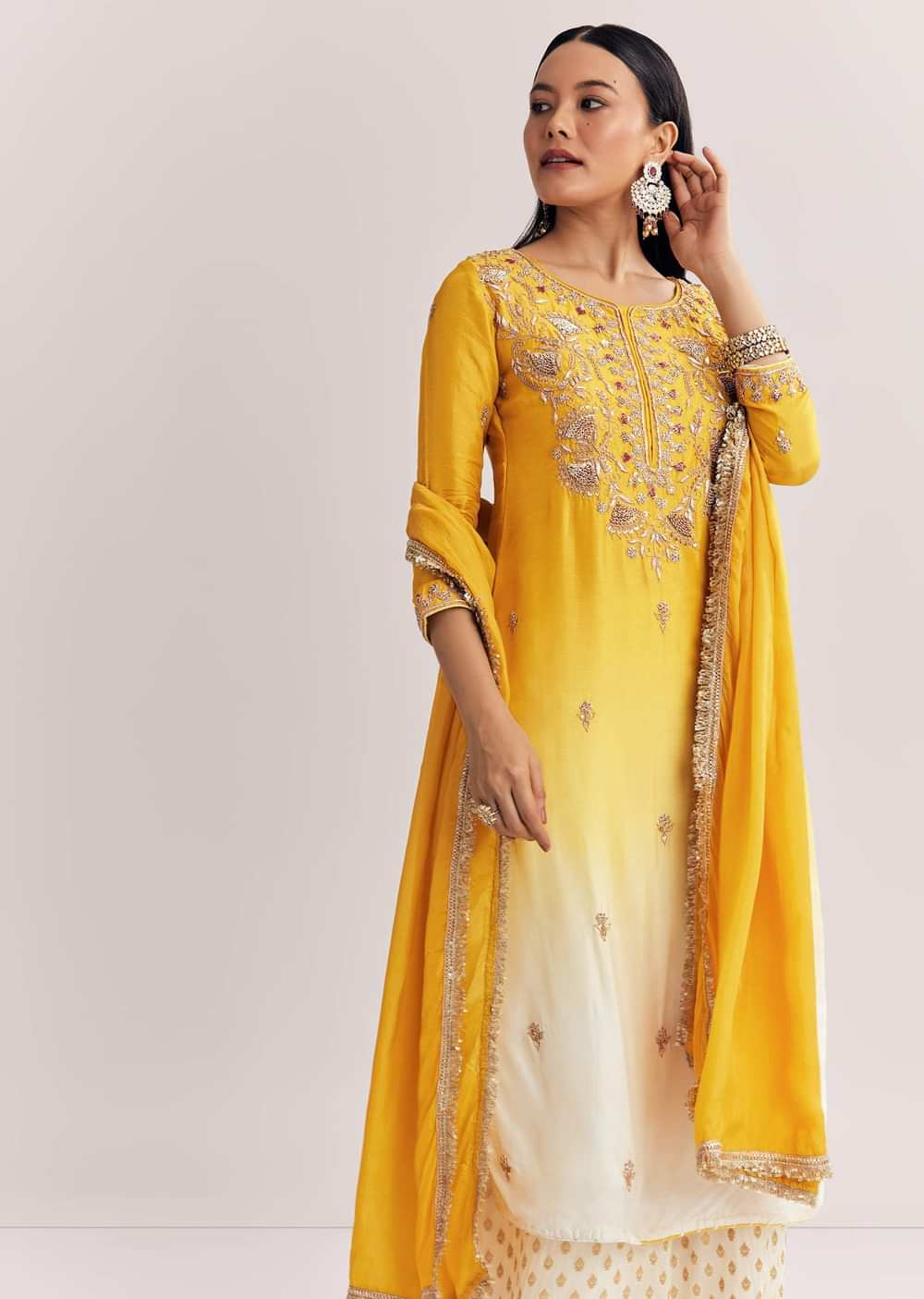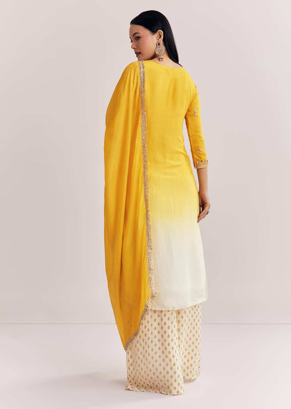 Yellow Ombre Kurta Palazzo Suit With Zardosi And Sequins Work