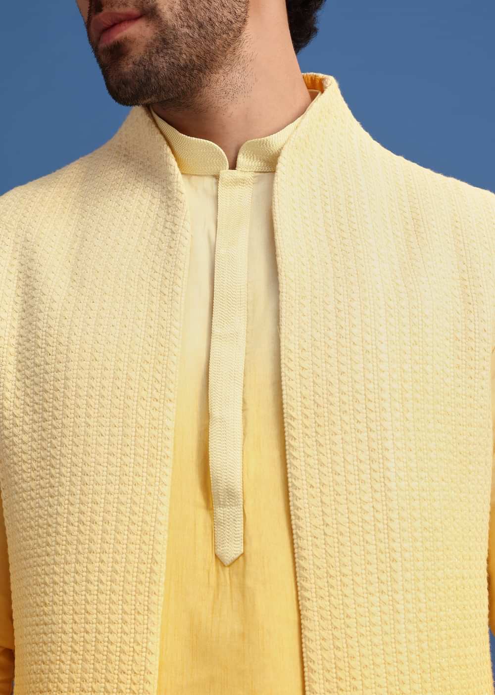 Yellow Ombre Silk Kurta Jacket Set With Zardozi Work