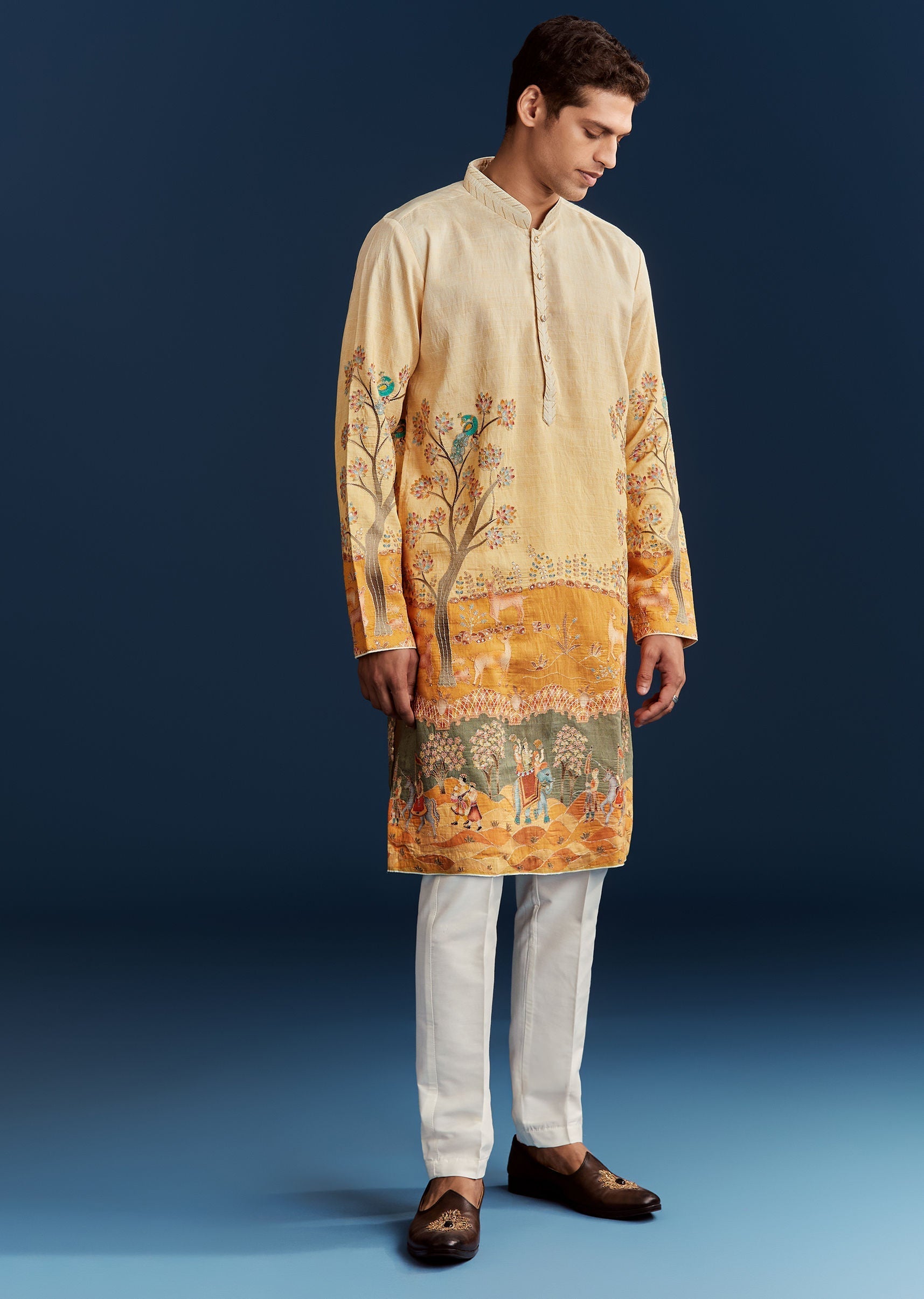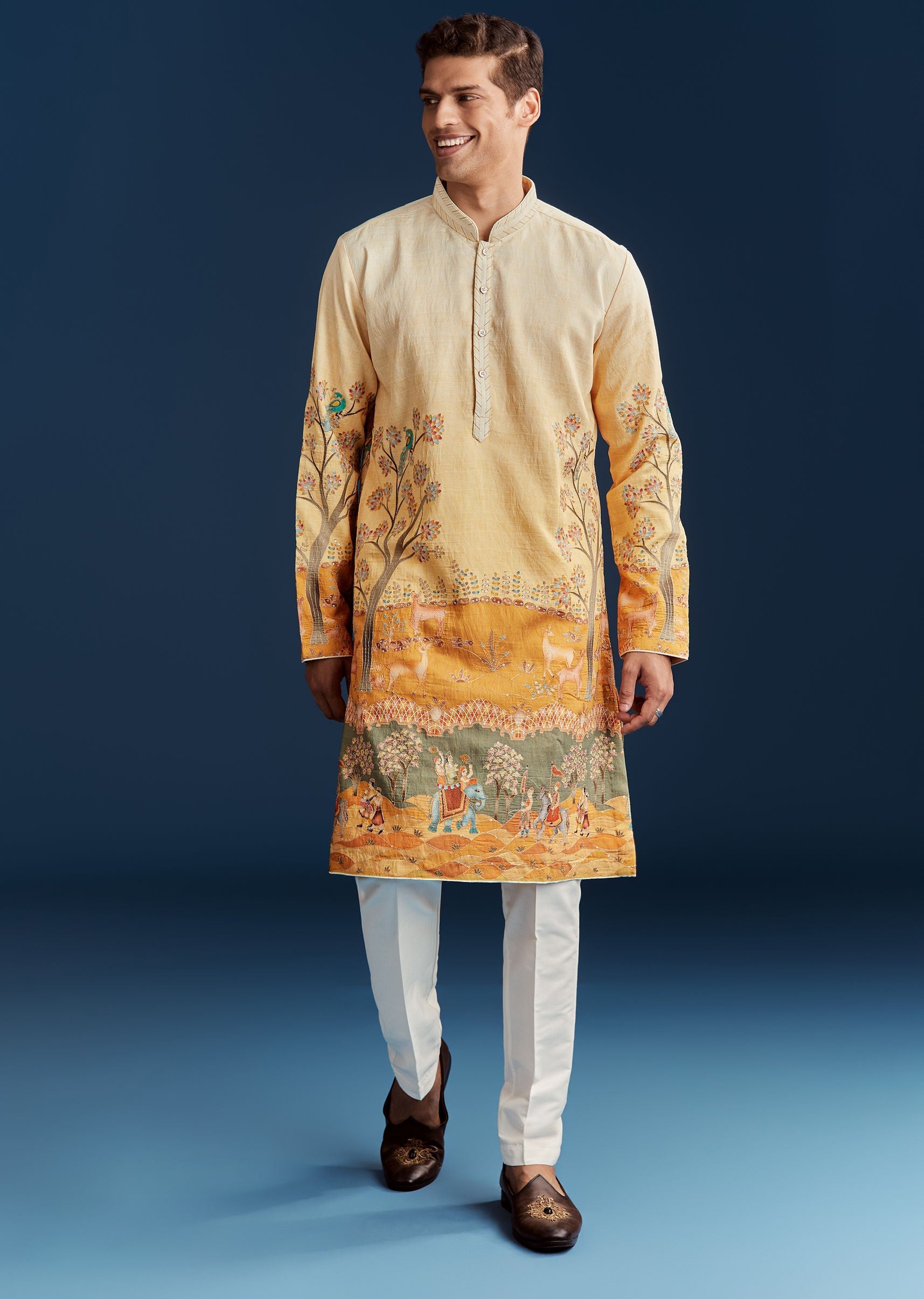 Bright and festive, this yellow silk kurta set adds vibrancy with its classic mandarin collar and fluid silhouette. Awarded as the Most Trusted Brand, we're delivering styles you love, just as promised.