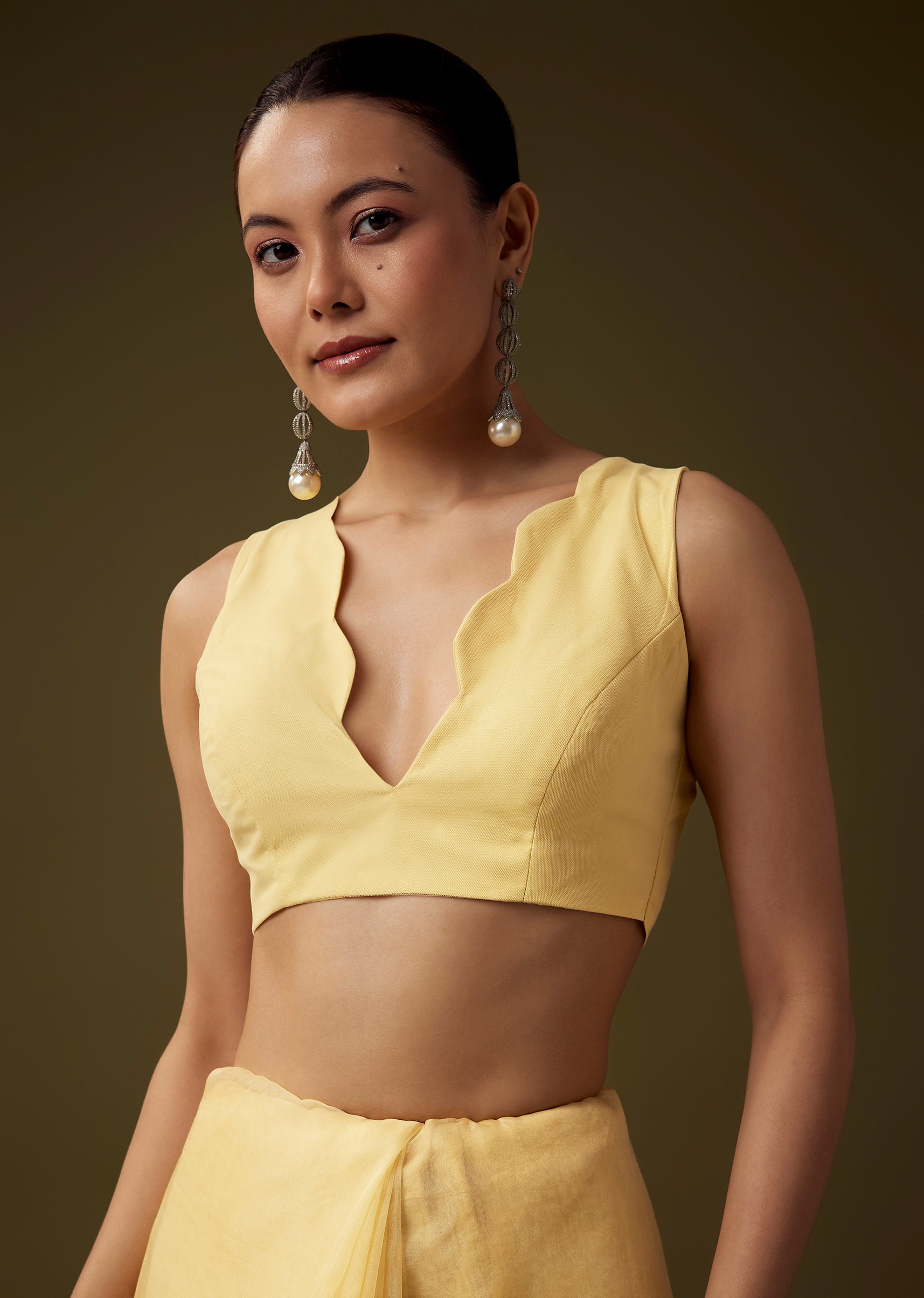 Yellow Organza Embroidered Saree with Unstitched Blouse