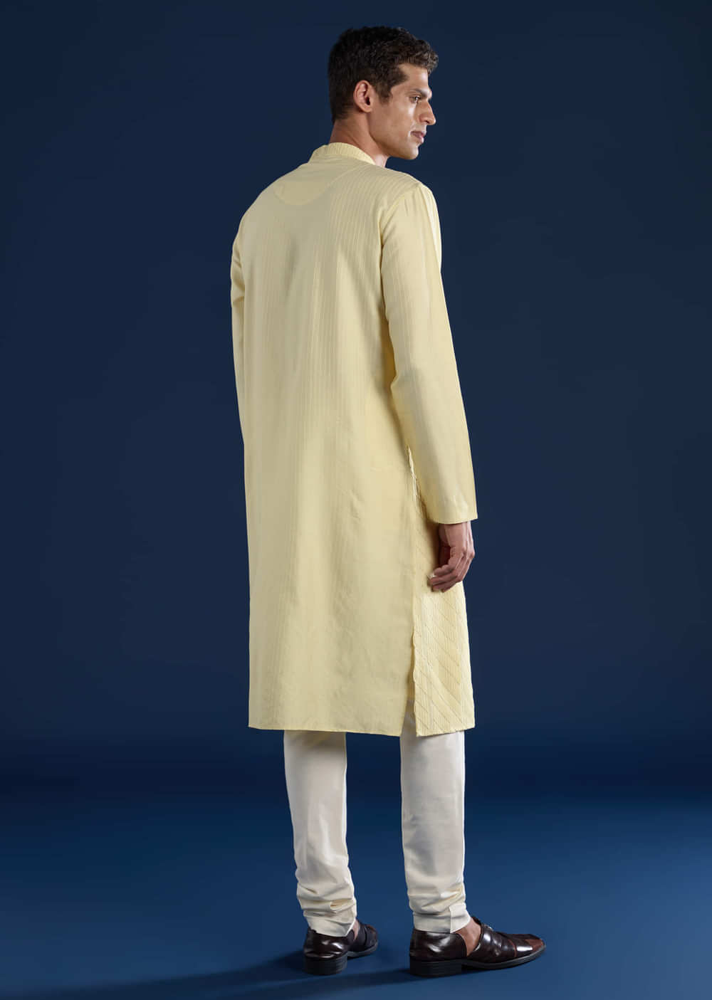 Yellow Pintuck Mens Kurta and Pant Set