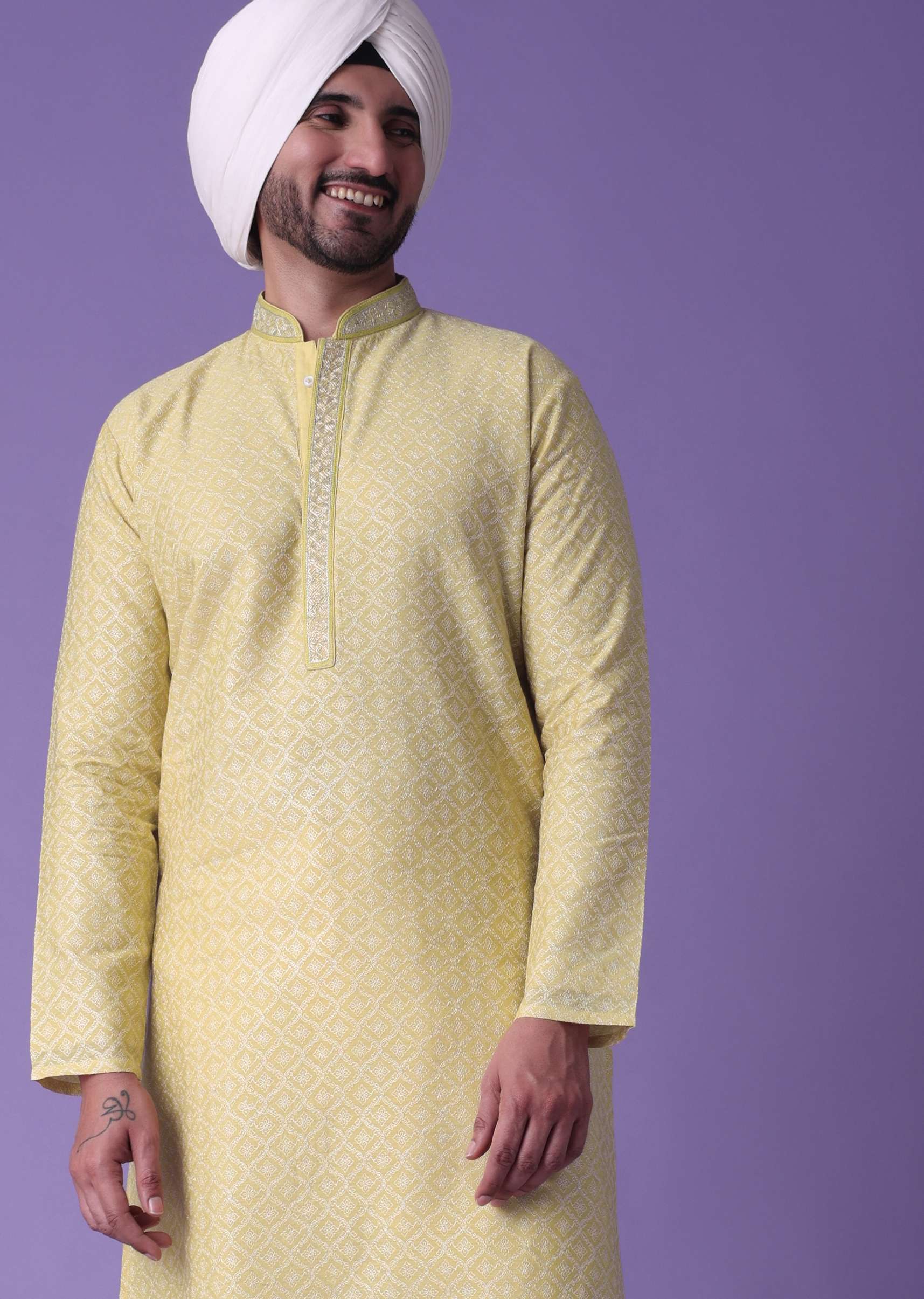 Introducing the yellow printed kurta set, an elegant and traditional outfit ideal for all of your special occasions, such as haldi, Diwali, and pooja. This elegant silk kurta's eye-catching zari... More Product Details