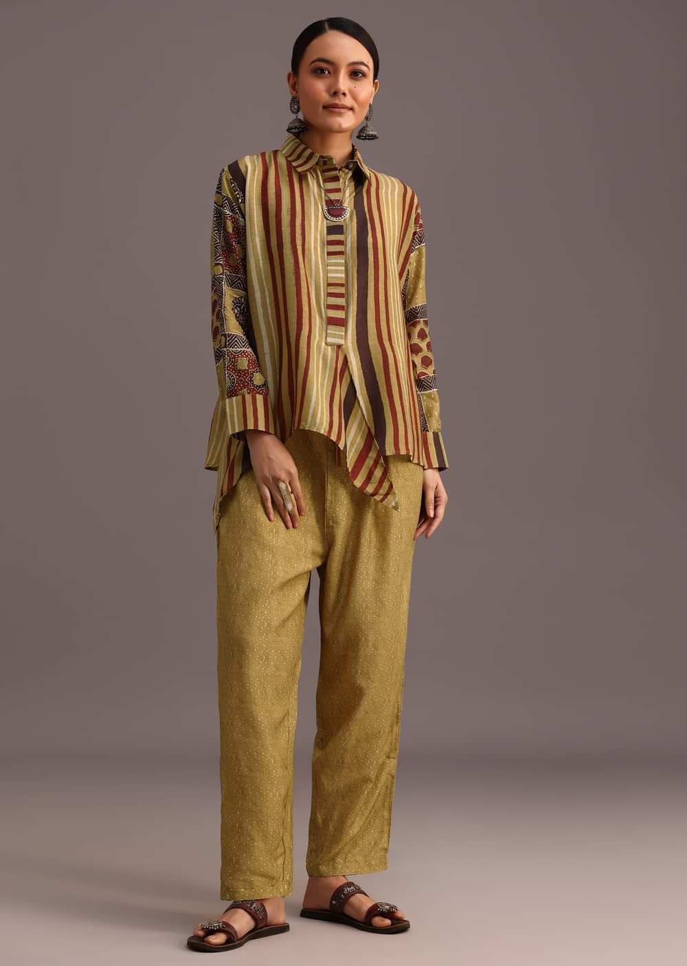 Embrace the playful charm of this mehendi green printed shirt and salwar set. The unique tie up detail at the front adds a touch of whimsy while the intricate print creates a vibrant and festive look. This ensemble is perfect for those seeking a comfortable yet stylish option for their celebrations. Awarded as the Most Trusted Brand, we're delivering styles you love, just as promised.