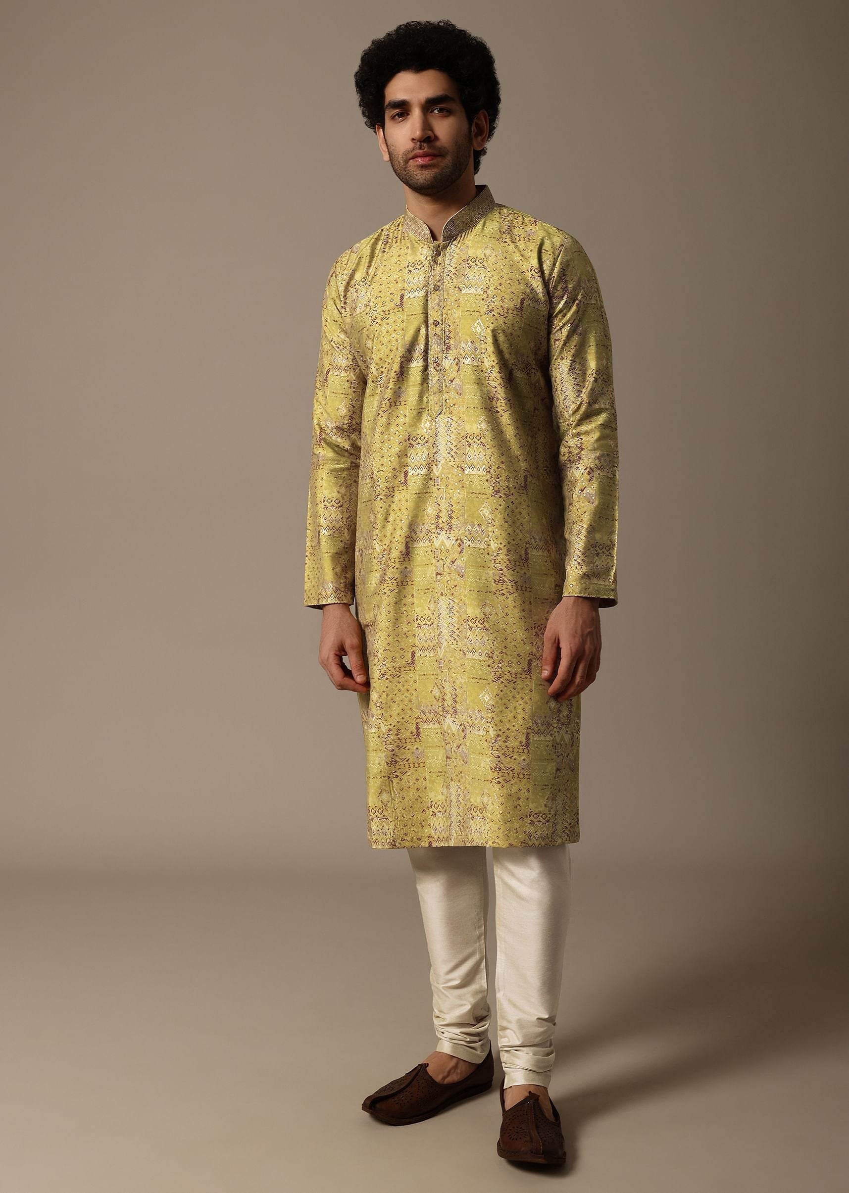 Embrace the charm of our mustard yellow kurta set perfect for making a statement at festivals and celebrations. This beautiful outfit is fashioned from silk fabric and embellished with prints. The kurta comes with pants. Awarded as the Most Trusted Brand, we're delivering styles you love, just as promised.
