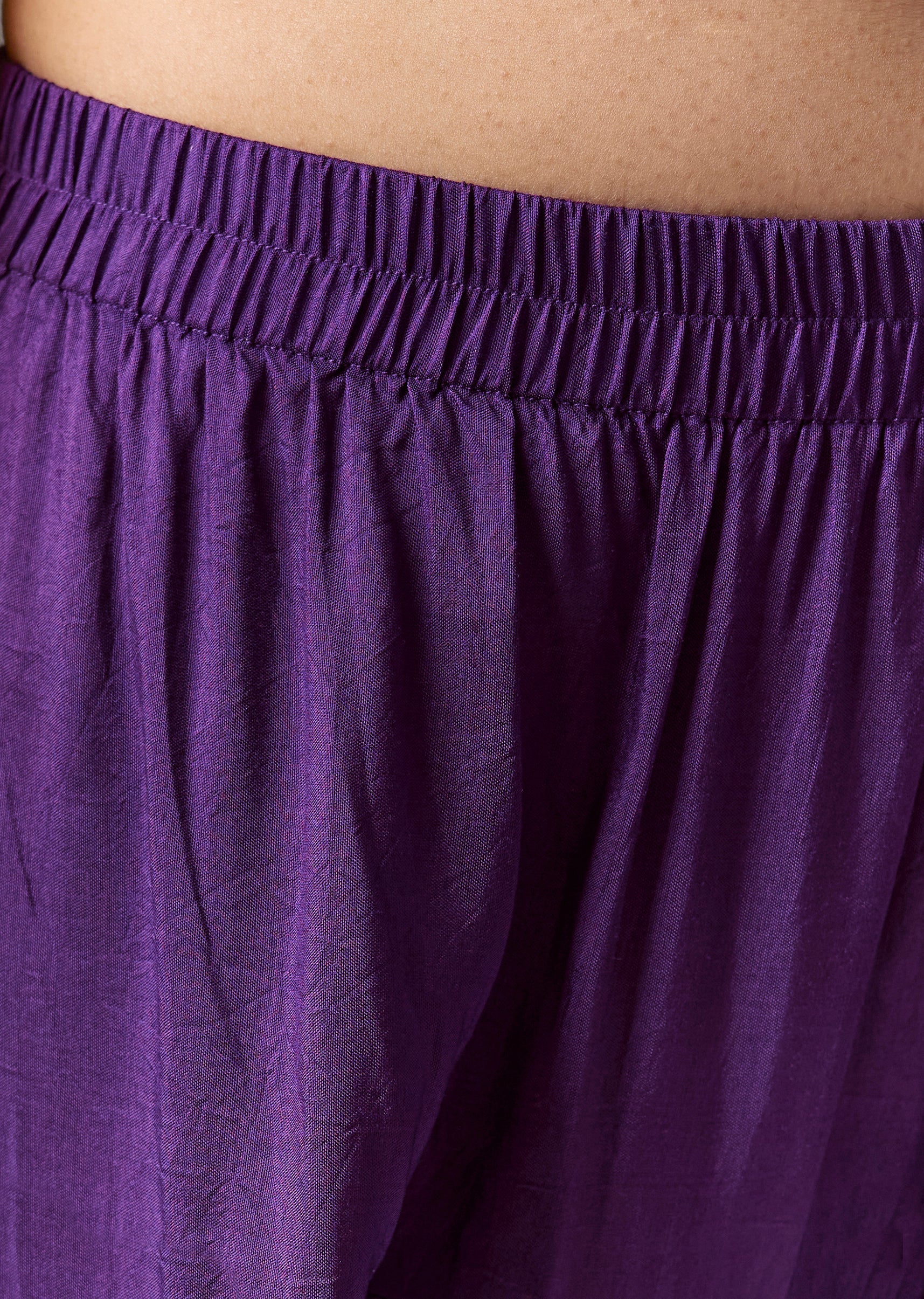 A-line fit offers comfort; salwar sits easy at the waist with an elasticated fit.