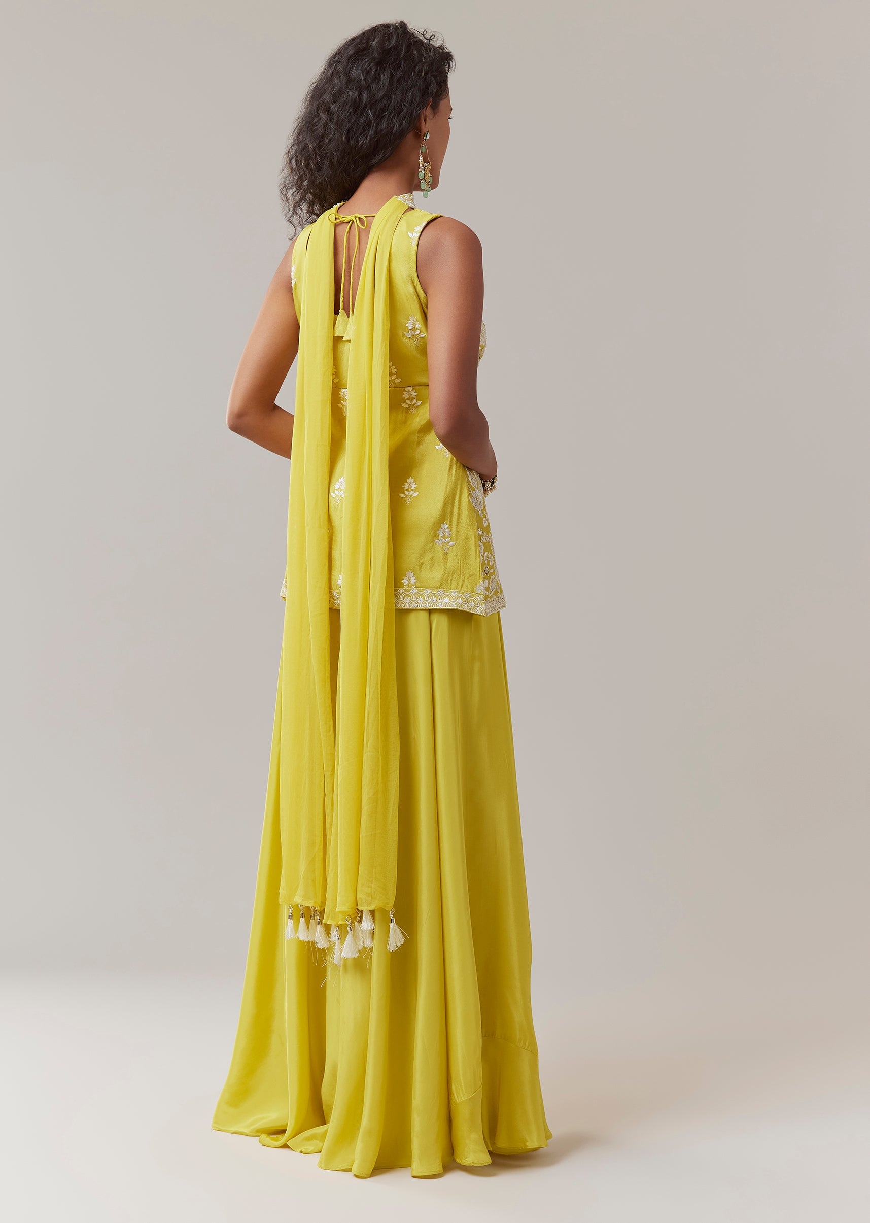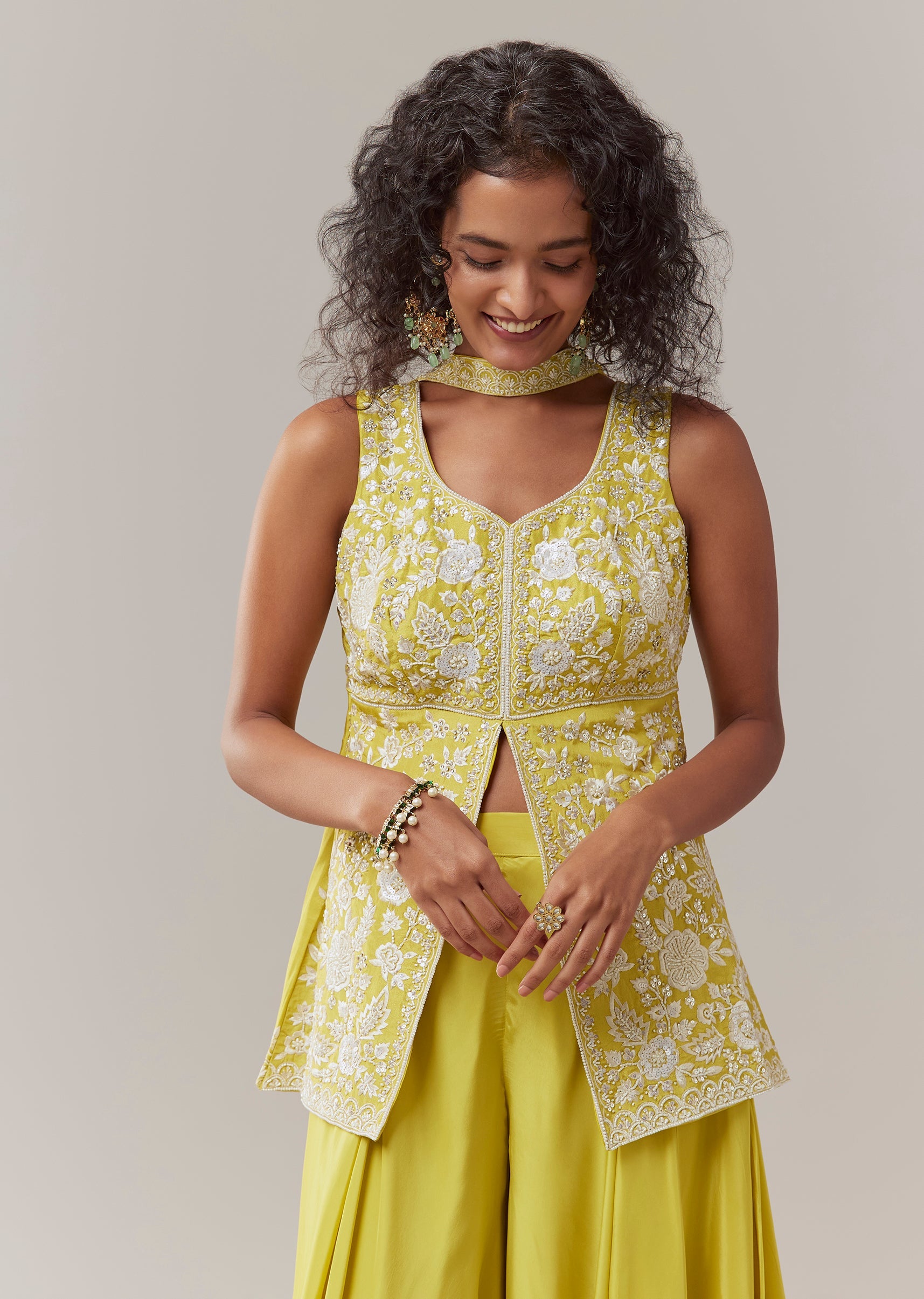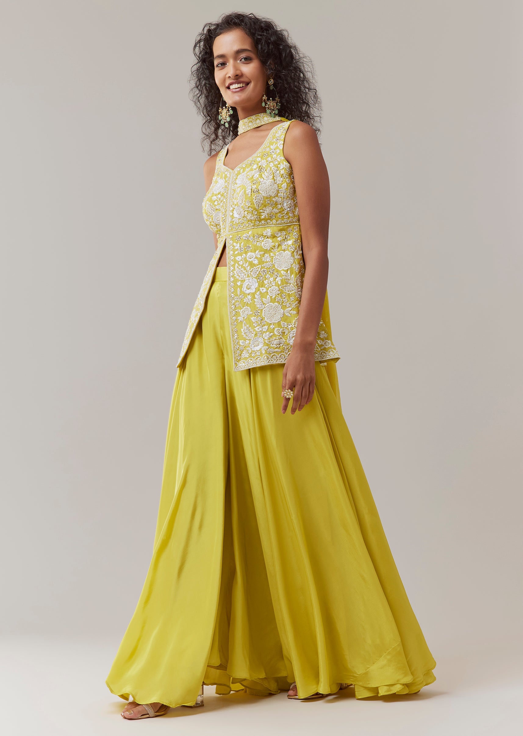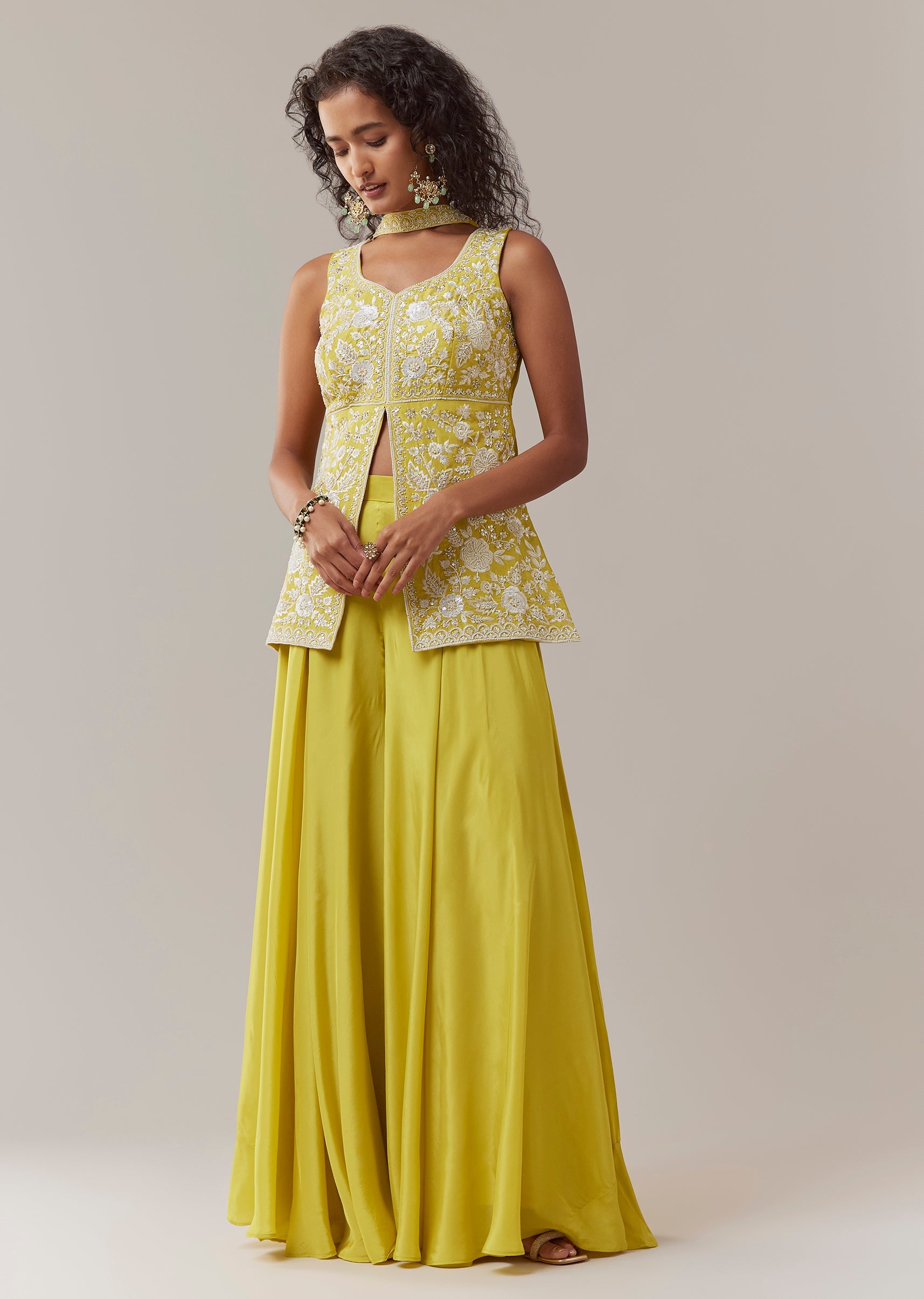Yellow Resham Embroidered Kurta Palazzo Set