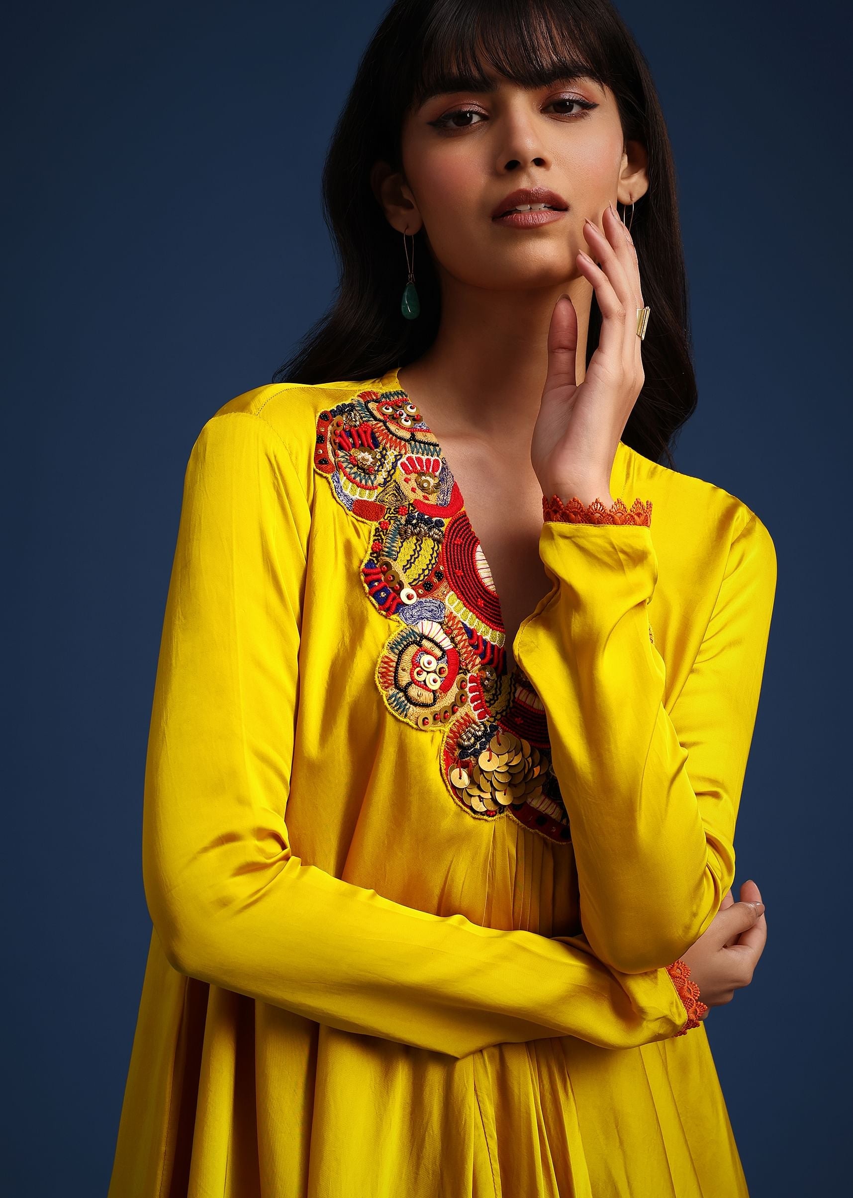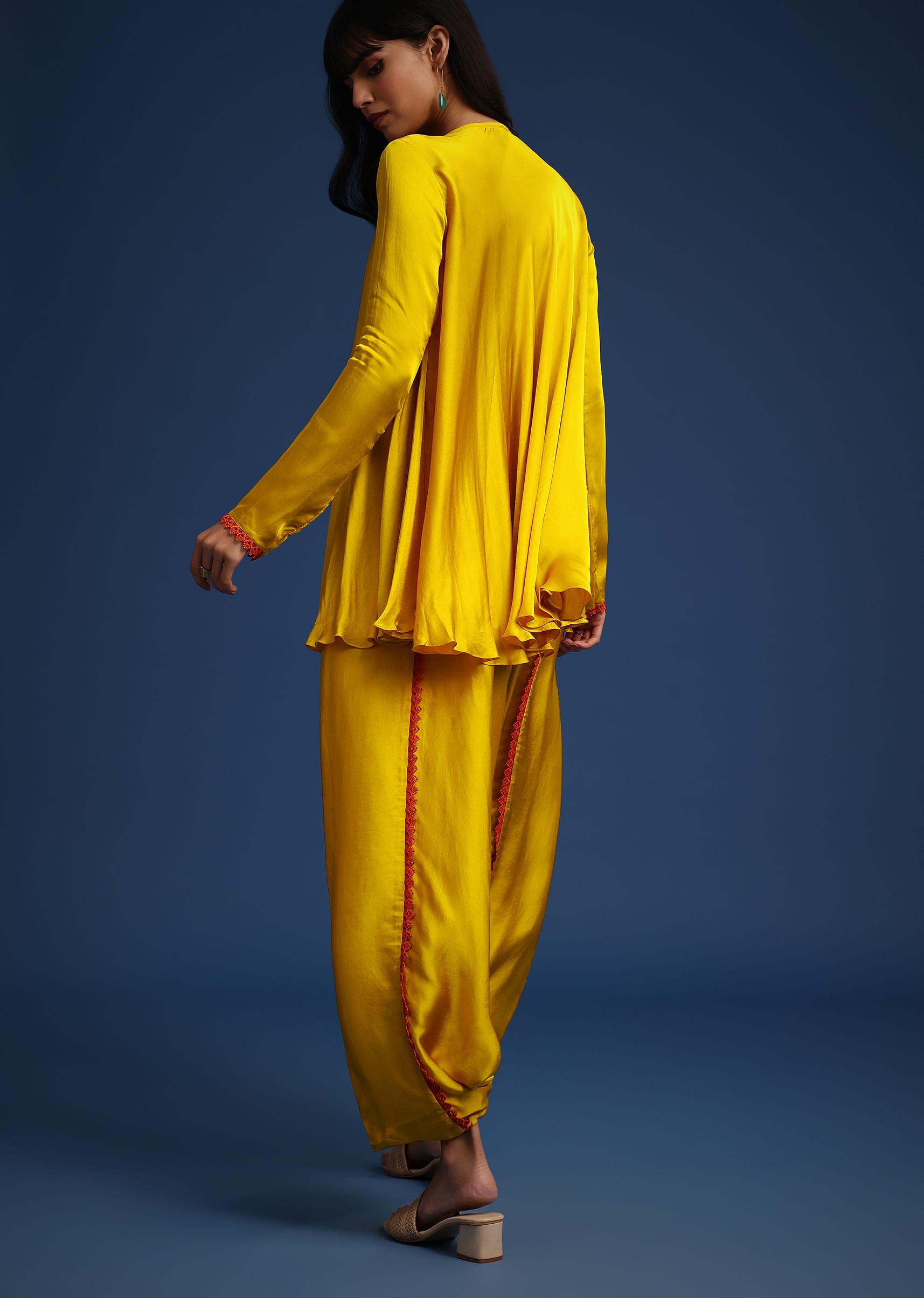 Featuring a radiant yellow kurta and dhoti set that embraces the bright and vibrant radiant trend like no other. The delicate thread work, beads work on neckline, and lace detail... More Product Details