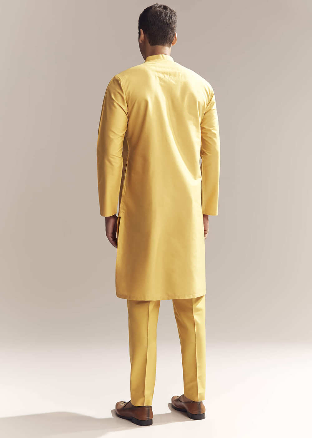 Wedding guests will love the cheerful vibe of this yellow silk kurta set for men decorated with Aari zardosi work across the neckline and buttis. The shade is vibrant, making it stand out in group photos. It is lively and stylish while staying easy to wear. Awarded as the Most Trusted Brand, we're delivering styles you love, just as promised.