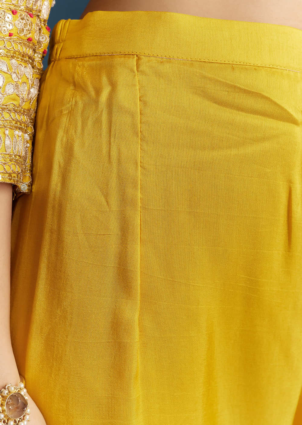 Sunshine shades come alive in this yellow silk kurta set with gotta work. The details add just the right amount of shine while the colour keeps things playful. It is... More Product Details