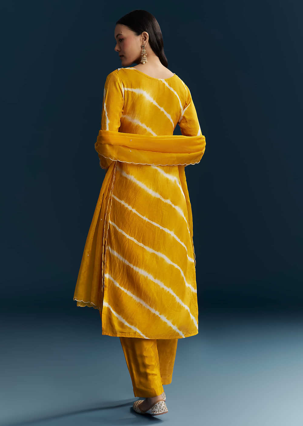 Yellow Silk Kurta Set With Leheriya Print And Embroidery