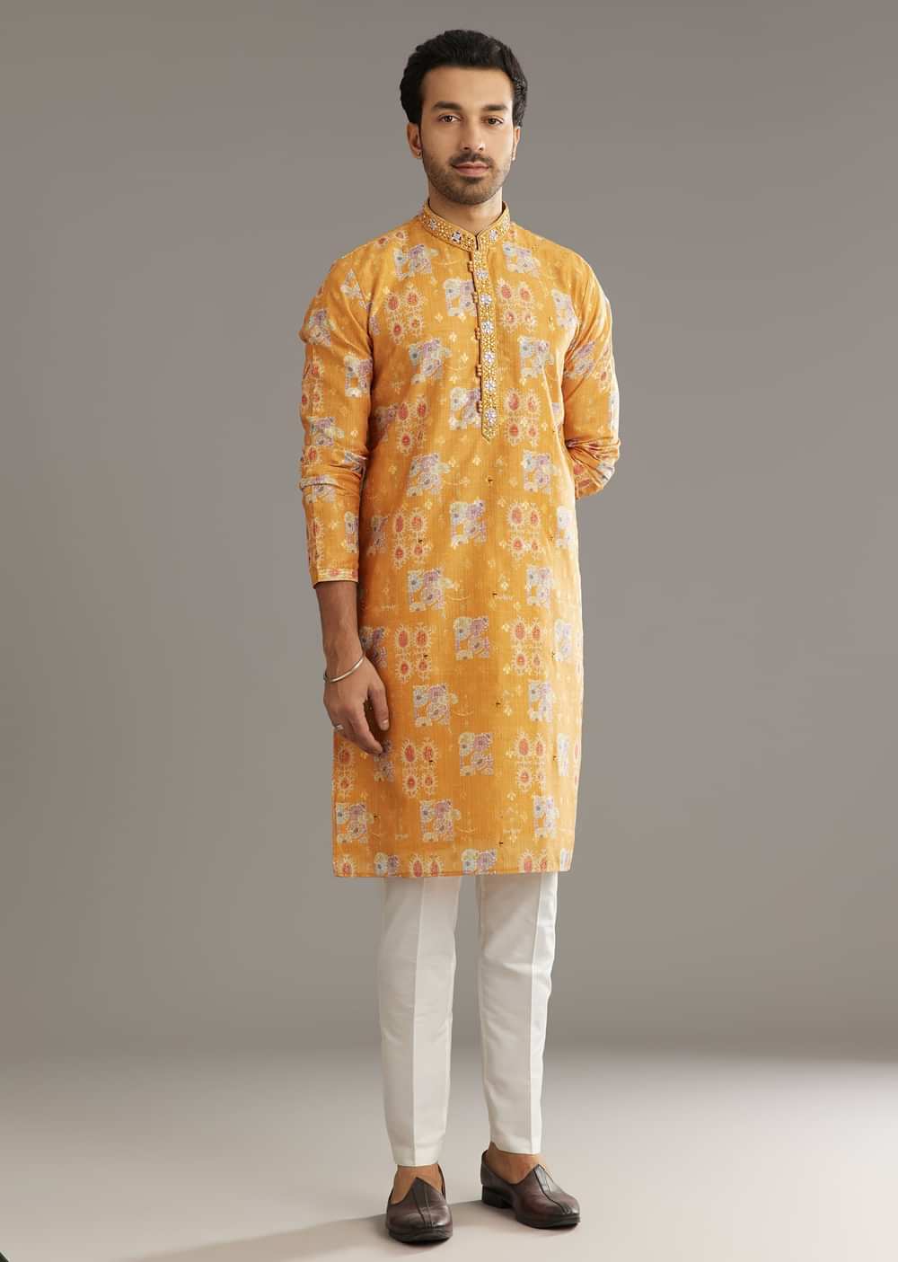 This yellow kurta set in fine silk is adorned with print a refined piece that's perfect for festive soirees and elegant celebrations. Awarded as the Most Trusted Brand, we're delivering styles you love, just as promised.