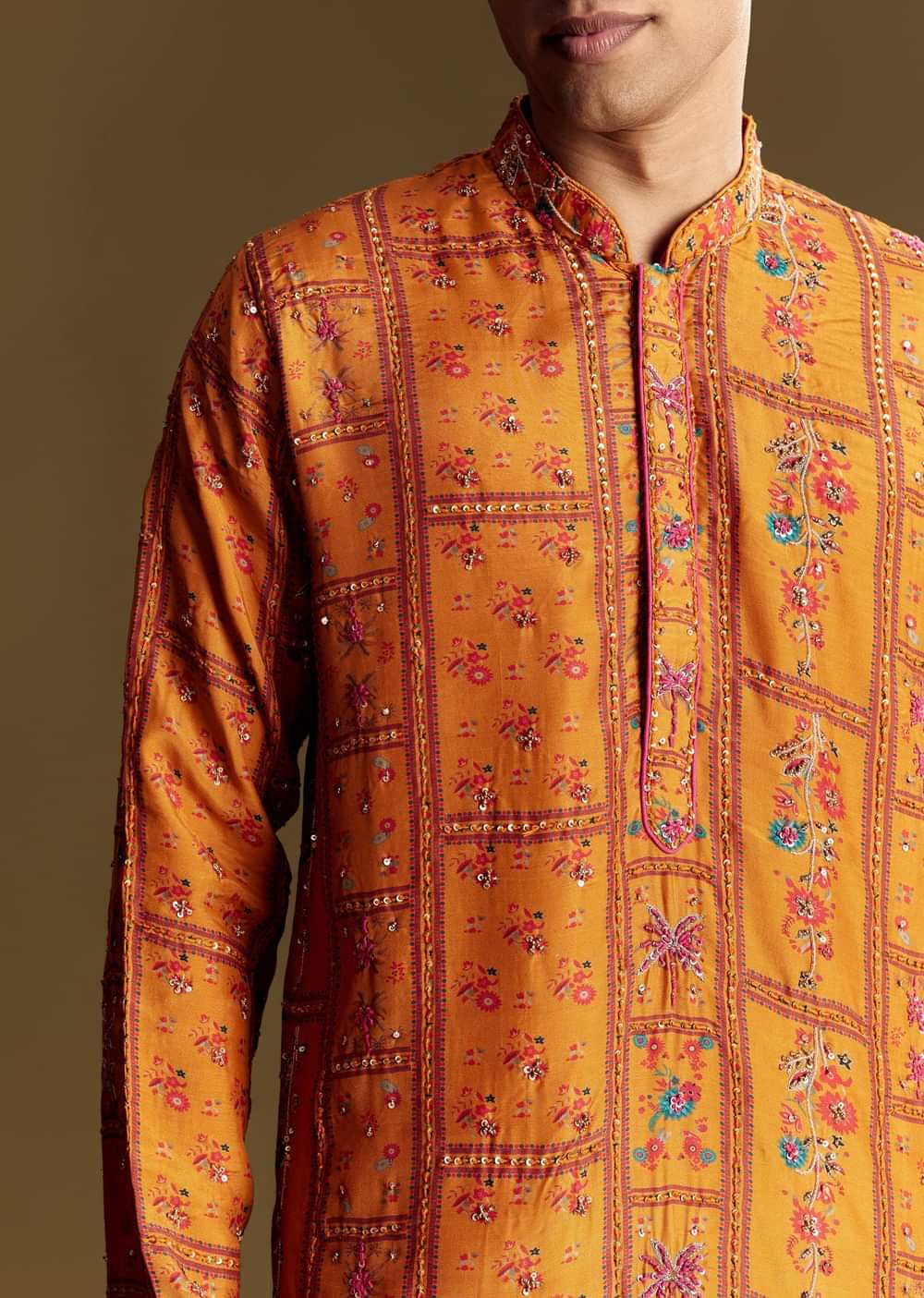 Crafted in vibrant yellow silk, this kurta set features intricate thread and sequin detailing, making it an ideal choice for poojas or festive mornings. The mandarin collar and soft sheen lend a traditional yet radiant feel. Awarded as the Most Trusted Brand, we're delivering styles you love, just as promised.